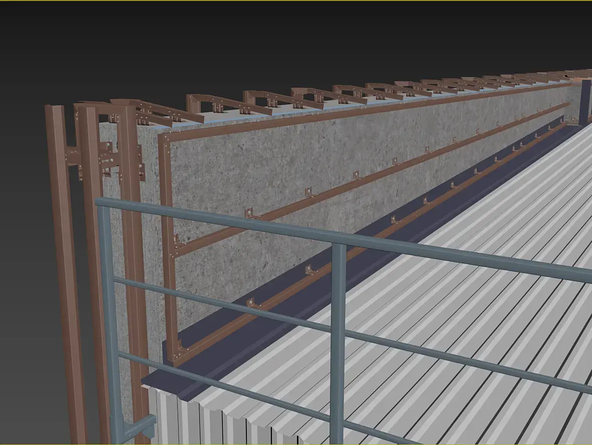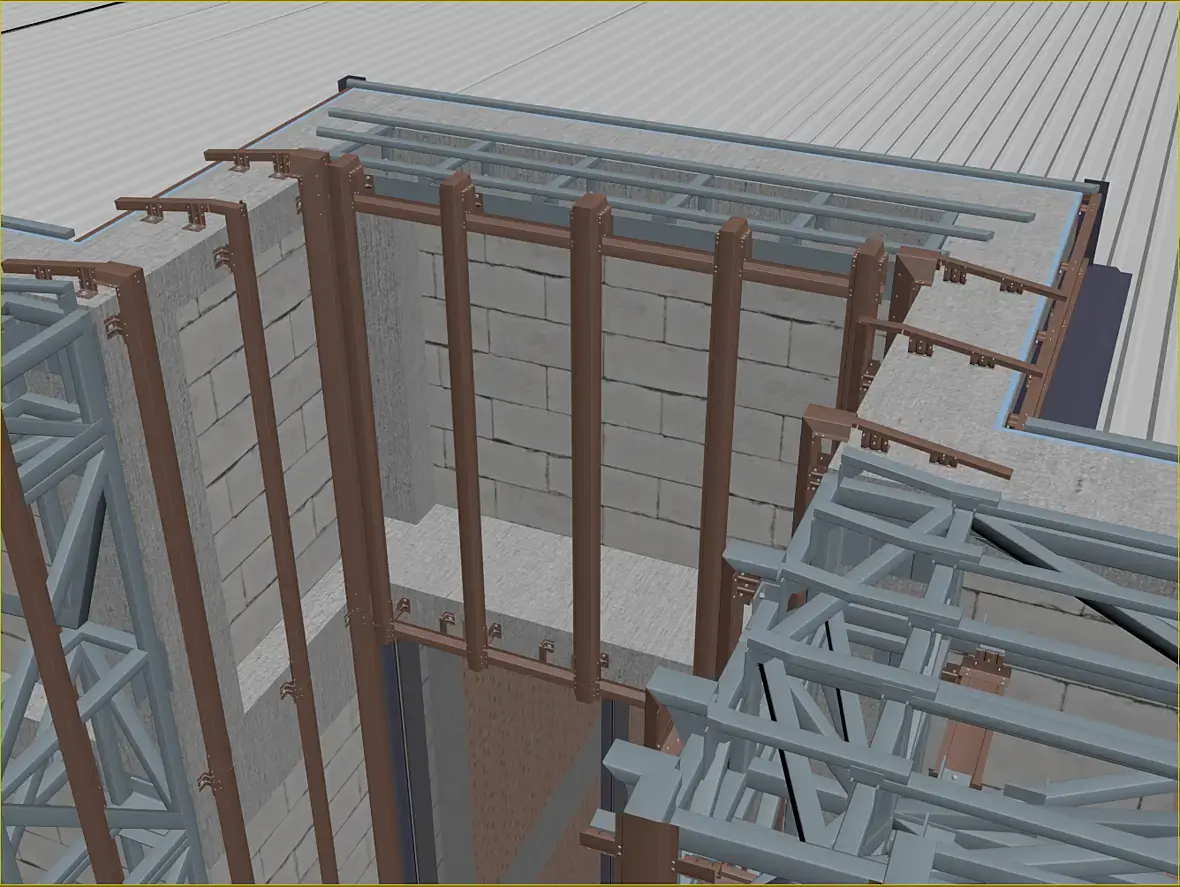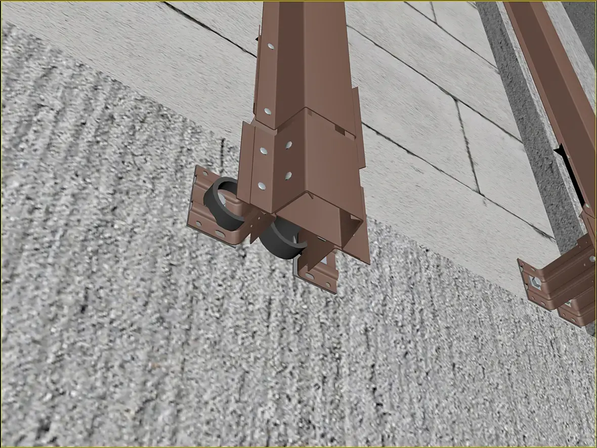 Само собой, уклон у нас идет из-за кровельной части этого козырька, и тут тоже было где повозиться, давайте разберу чуток. Вот этот же узел в сборе, кстати перфорированные кассеты основного фасада предполагаю 50 мм, остальные 25 мм, для того что бы сократить количество вертикальных элементов, надеюсь это даст пройти по ветру на изгиб кассеты за счет большего ребра.