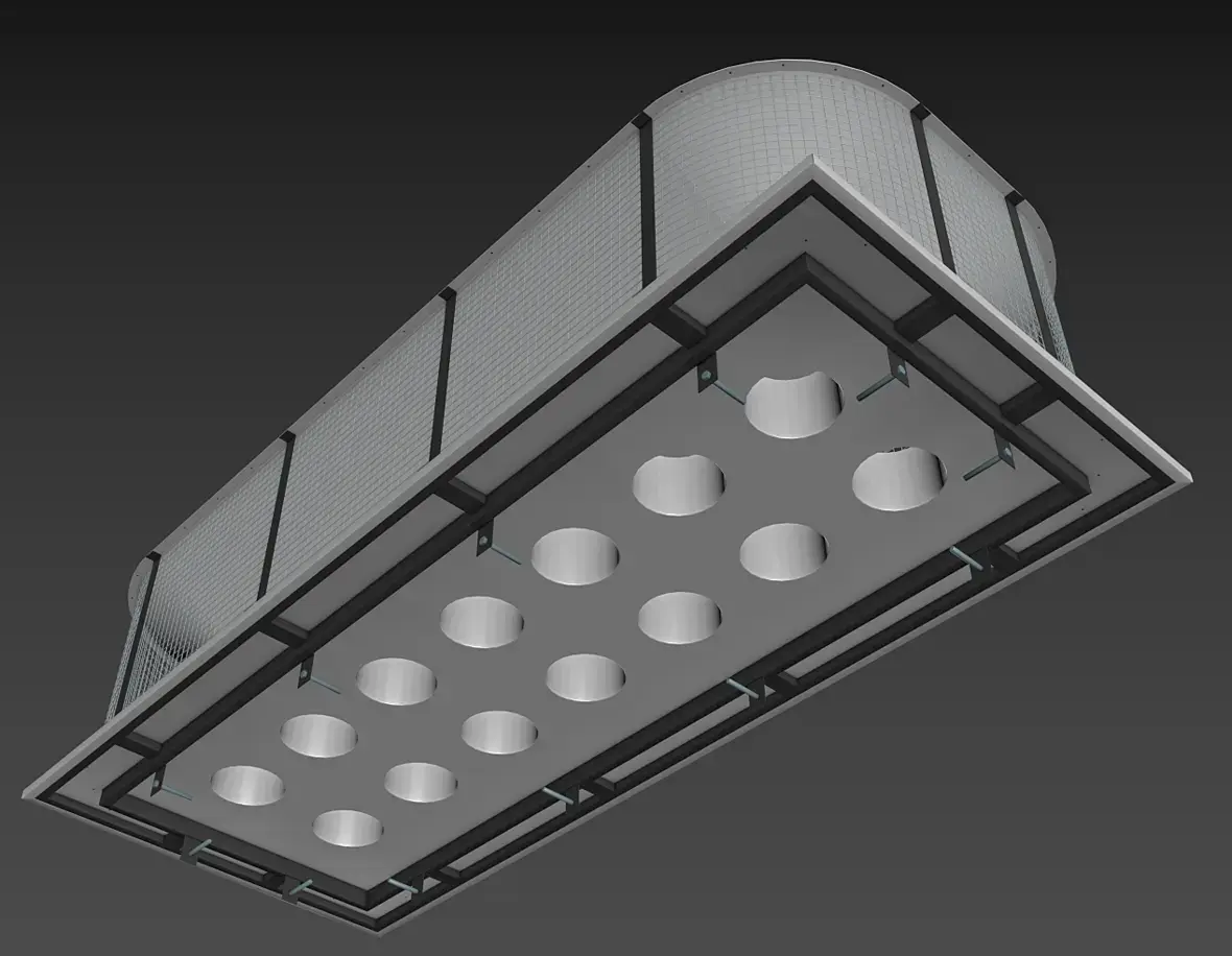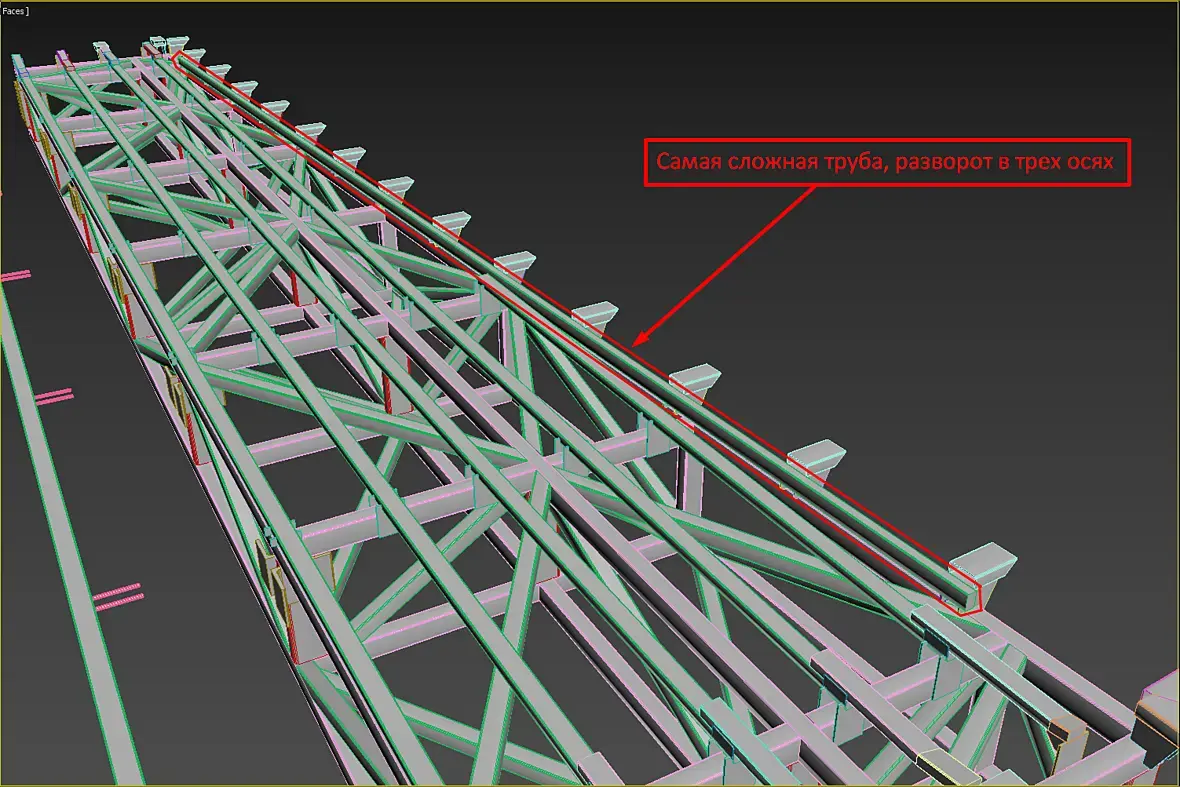 И если мы посмотрим на ребра и трубу слева то увидим что они формируют, трубу сделал прозрачной: