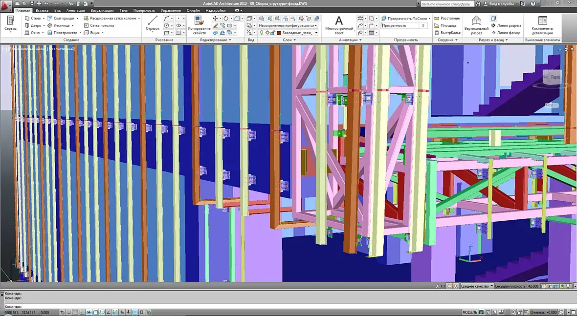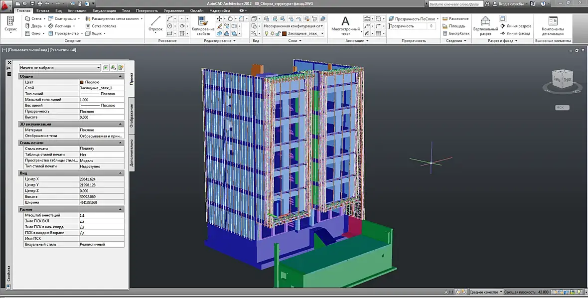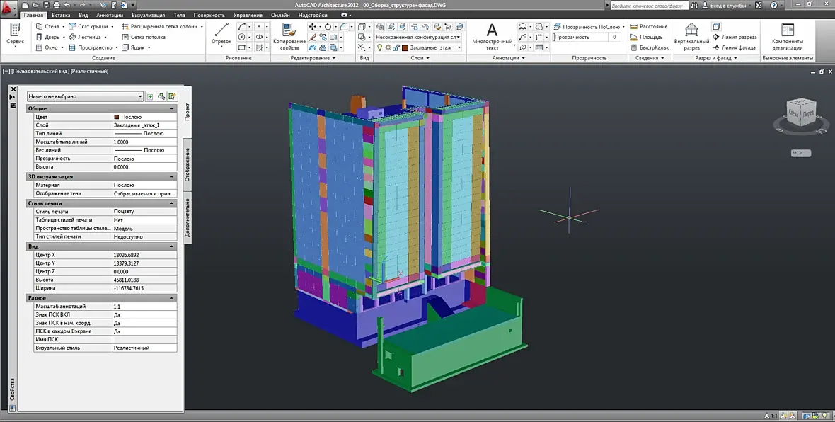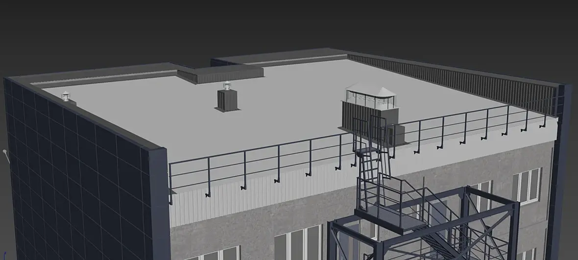 Конечно же, как только появился фасад, его нужно подружить с кровлей, да и на верхних формообразующих тоже кровля есть. Смотрим что получилось: