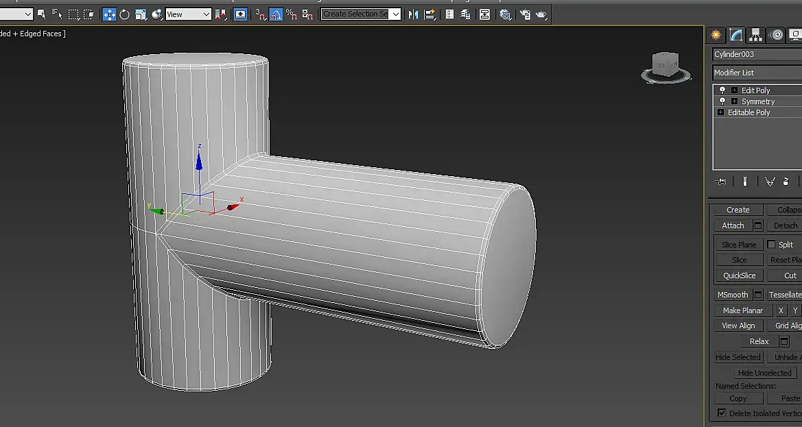 Так концепция немного изменилась, теперь состоит в том что бы и так и так можно было использовать. А те что поперек идут необходимы, в вашем примере с двумя цилиндрами, ситуация идеальная, и вертикальные и горизонтальные эджи совпадают. По этому вам в этом месте достаточно одного. В моем случае они имеют разный диаметр, и разное количество граней.