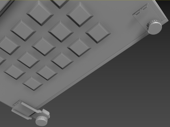 После перерыва еще два с половиной часика помоделил. Доработал нижнюю часть, сделал более детально примыкание нижней панели к остальным. Добавил опорные площадки. И еще один элемент не понятный.