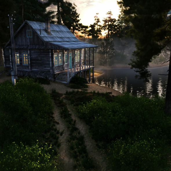 Муж сказал, дерево таким серым не бывает. Ну а я то точно помню старый дом в деревне у озера, он вот таким серым был...Но , как визуализатора меня больше волнует , скаттер на дороге, задний план и вода