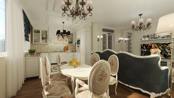 Бэкграунд слишком насыщенный, его нужно сделать более светлым (за окном всегда светлее, чем внутри интерьера (не считая определенных исключений)). Картинка кажется плоской, не хватает обьема ( я имею в виду что освещение не корректное. Практически нет теней, много света в интерьере, хочется убавить. Можно добавить маску Txmap и в пост-обработке накинуть на умножение. Это уже в фотошопе.) В столовой на столе кувшин с соком (я так увидел :) ) не имеет отражений. Я бы добавил рефлекта. И можно подрегулировать камеры более художественно ( можно использовать правило третей). А так очень даже нравится, сам стиль интерьера и декорации не перебарщивают. Удачи smiley-smile.gif