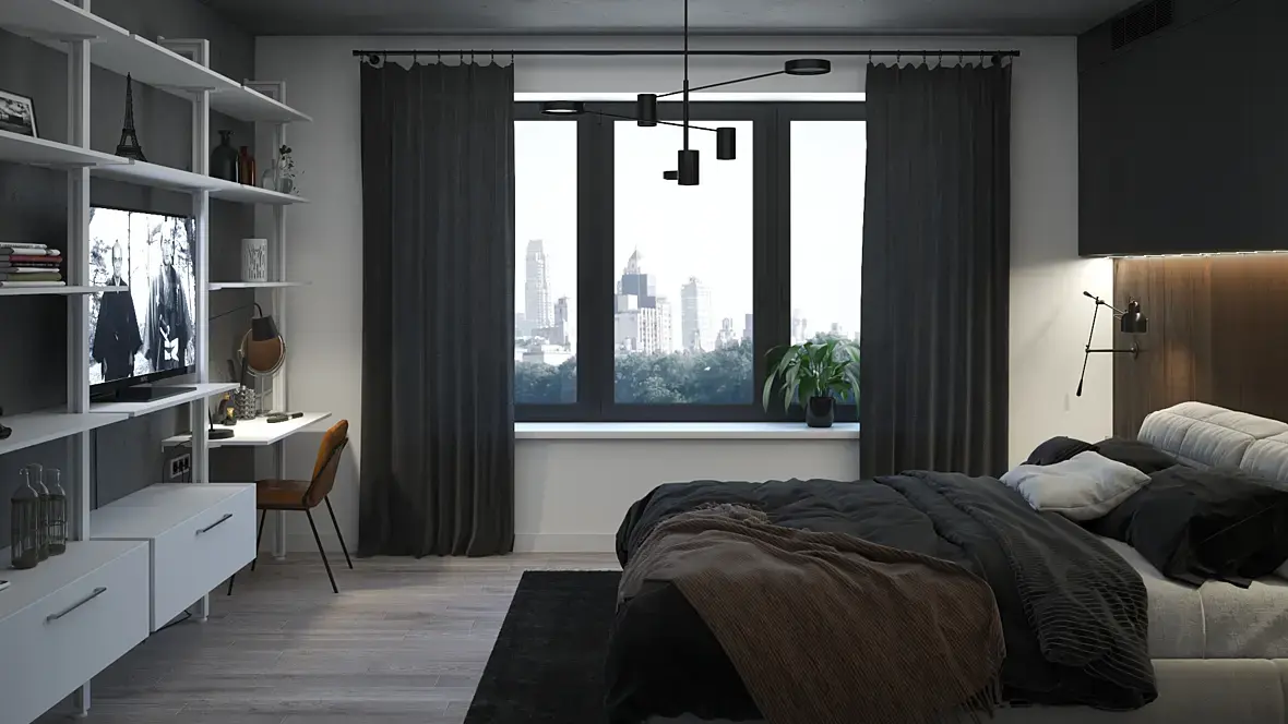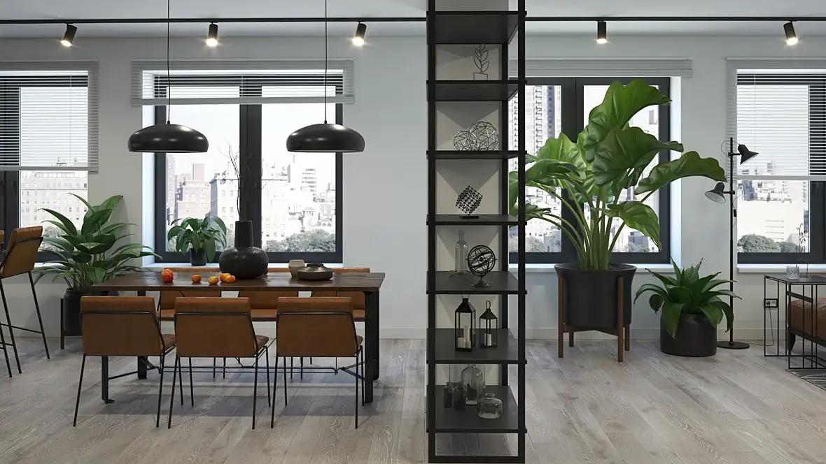 Приветствую, коллеги! Опять рисую интерьер для портфолио. Сначала хотел придумать прямо совсем лофт, но не справился - начал получаться какой-то, простите, бомжатник, пришлось его облагораживать) Теперь это вроде контемпо с элементами лофта...