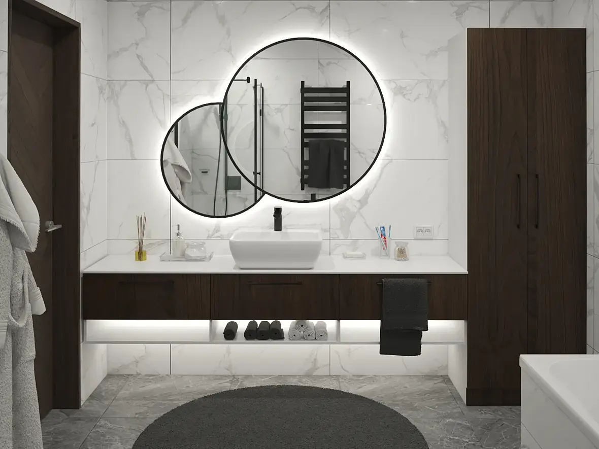 4. Обращайте внимание на такие вещи (хотелось написать "мелочи", но это не мелочи, потому что дьявол - в деталях), как врезающийся в раковину коврик, криво постеленный относительно дивана ковер, зачем-то включенный абсолютно весь свет в ясный солнечный день, скучные два одинаковых больших растения, одинаковое (и оттого скучное) освещение в гостиной и спальне, два душа в одной и той же ванной.