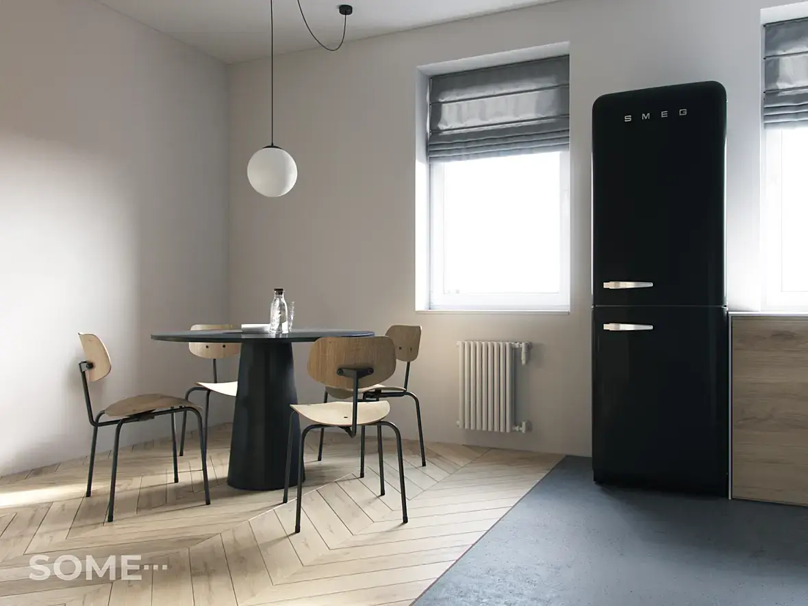 - холодильник, извините меня, своей массивной черной громадой больше напоминает гроб..