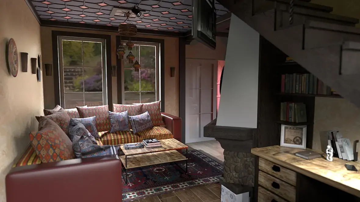 Это не так. Здесь подобран свет пасмурный за оком, назревающий дождь, а внутри интерьера тепло светло и сухо. Это создаёт уют.