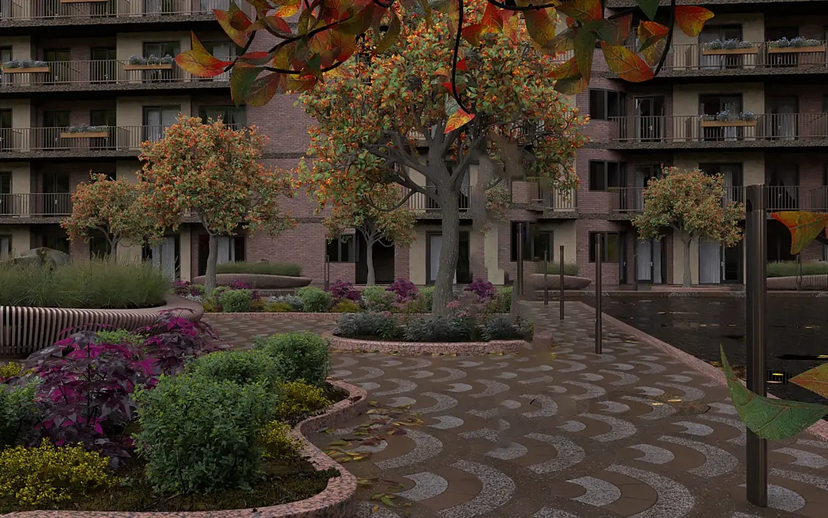 Листья на самом переднем плане, очень нереалистичны, луше поменять на реальное cut-out дерево потом в фотошопе. Да и модели деревьев тоже не очень