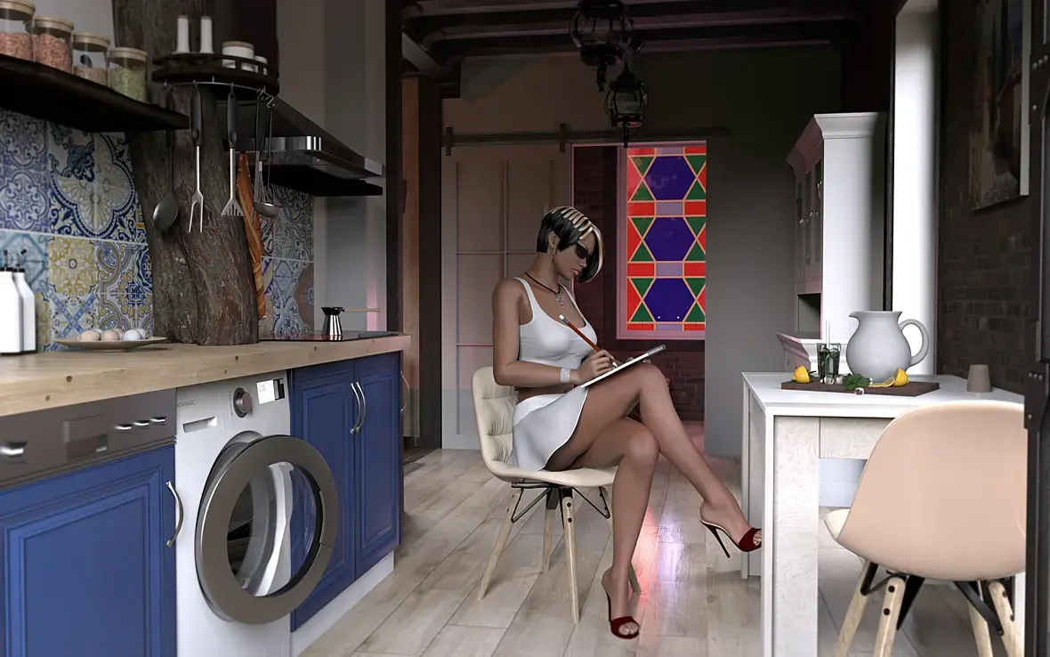 Кстати по материалам. Многие пишут, что с материалами надо поработать, что не так? С какими материалами? Пока только по кухне с девушкой, с гостинной мне пока понятно - дорабатываю.
