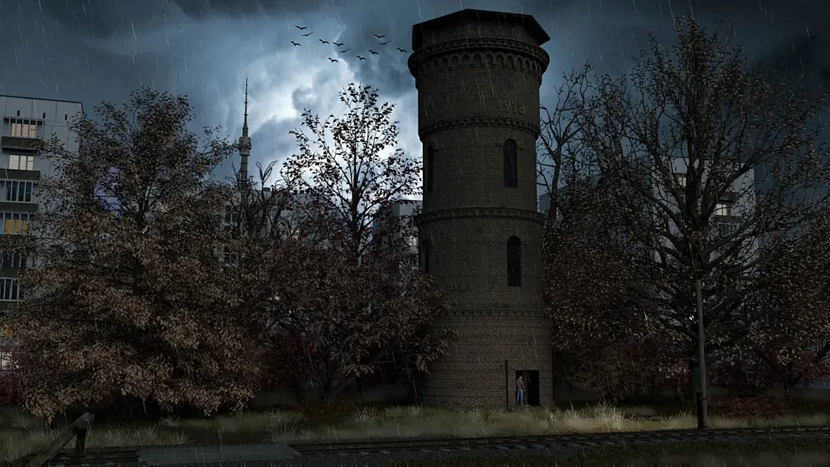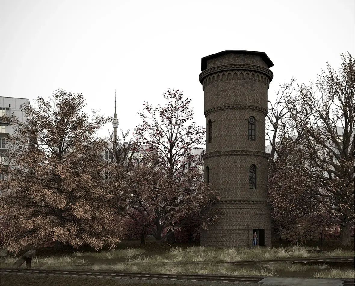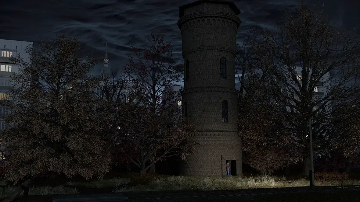 Наоборот, на изображении главное не башня, а человек который стоит у основания в проеме двери