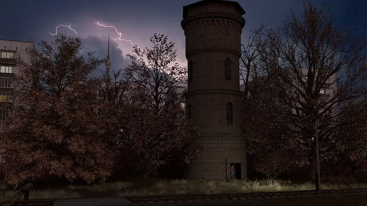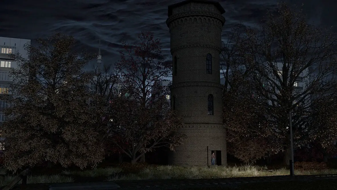 Наоборот, на изображении главное не башня, а человек который стоит у основания в проеме двери