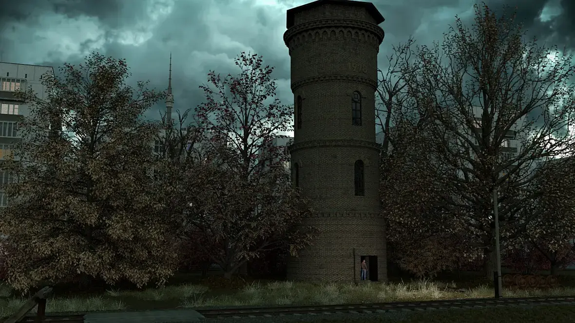 Наоборот, на изображении главное не башня, а человек который стоит у основания в проеме двери. Третья идет практически точно по проему при этом находится в воронке внимания спирали. Вариант который предложил Nick_pan хорош и я даже попробовал, но тогда потеряется главное - человек, я буду рендерить финал 2560х1600 при таком разрешении его будет видно хорошо. Если башню отодвинуть, изображение теряется