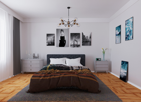 2) странное решение по тумбам, мне очень режет глаз разное расстояние от кровати до тумбы;