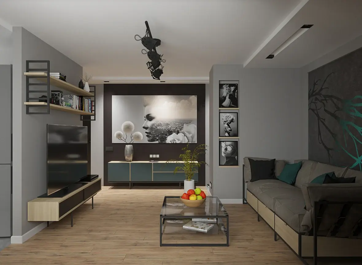 Можно оставить цветовую гамму, но тогда надо по уровню мебели и материалов вытянуть их до люксовых, и чтобы глаз радовался форме и текстуре. Чтобы взор рассеянно блуждал по пространству, ни на чём не акцентируясь, но просто отдыхая в этой обстановке, а не натыкался постоянно на острые углы.
