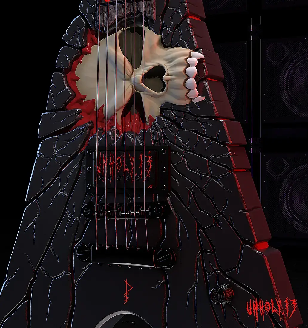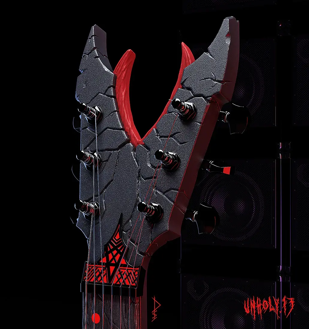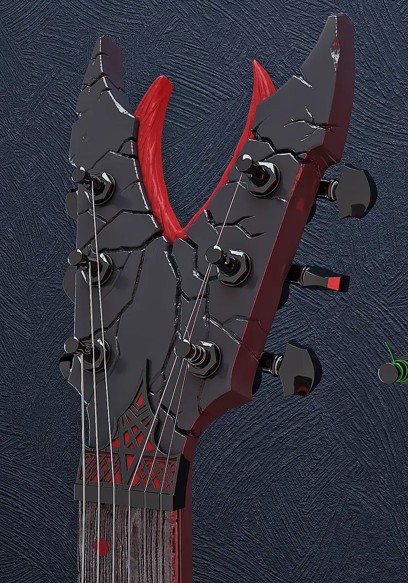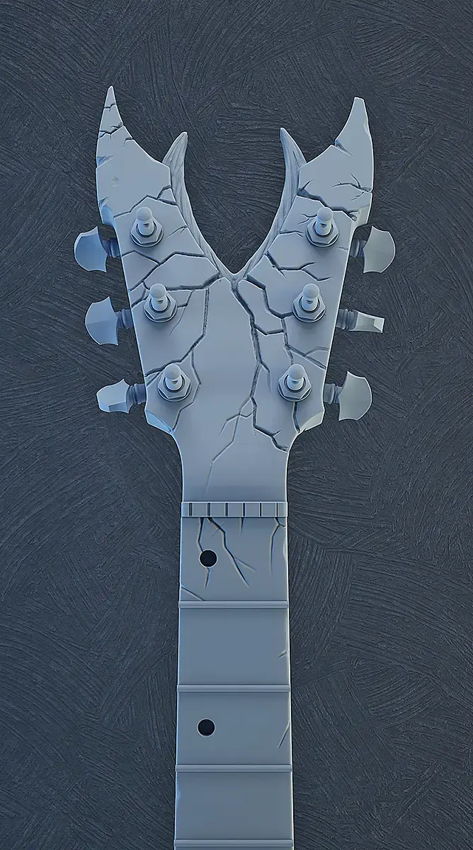 Продолжаю работать над гитарой ) сейчас дорабатываю материалы в ZBrush рисую текстуры и над окружением работать начал )