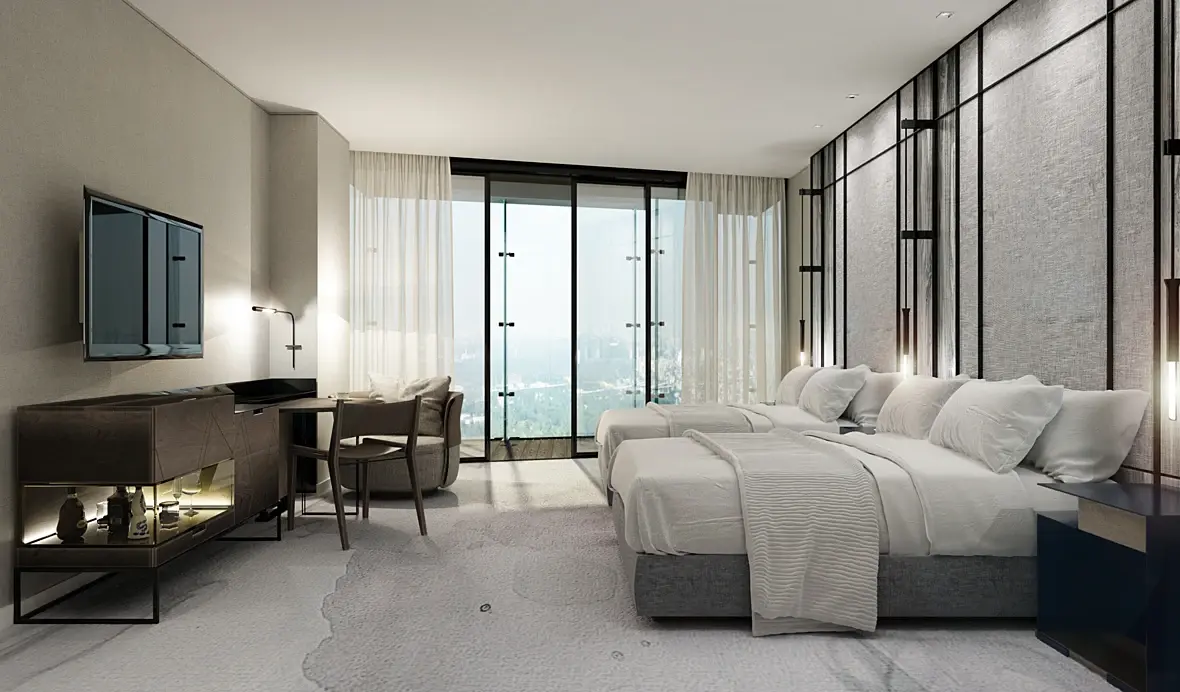 А в кинг рум окно не ближе к кровати, чем в дабл? Можно специально пустить дорожку света на кровать, тогда первый план, более светлый, выделит темный задник. Еще я, если от вирей (или корона) скай света не достаточно, ставлю фейковый светильник-плейн перед шторами. У Вас на рендере бэк за окном нормальной яркости, свет на полу есть, но общее впечатление, что комната освещена плохо. Еще бы посоветовала применить рэй свич материал для пола и стен, Вы избавитесь от серо-бежевого оттенка на потолке и других поверхностях, которые должны быть белыми и в общем картинка станет чище и ярче. А в общем - нормальный гостиничный интерьер.