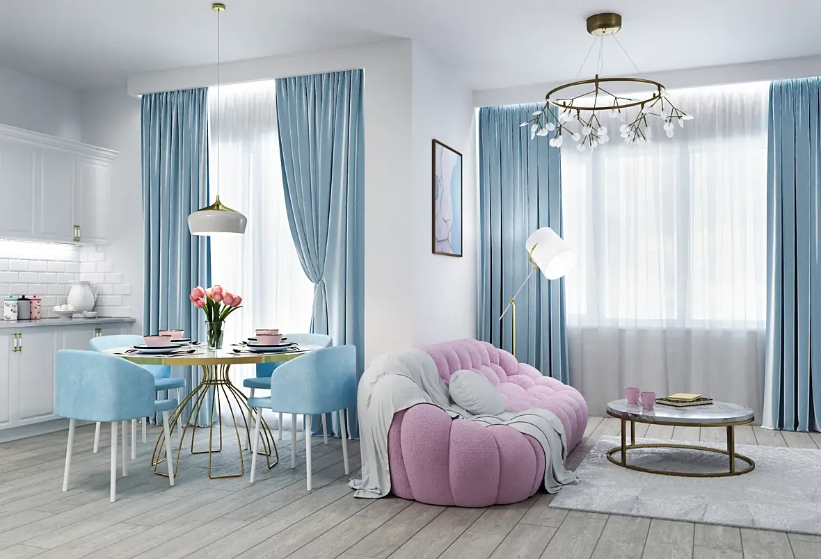За окном яркий день, а в комнате тускло. Плюс в левом углу свет падает видимо от кухонной подсветки и такое ощущение что основное освещение идёт из-за камеры, изнутри помещения. Так не должно быть.