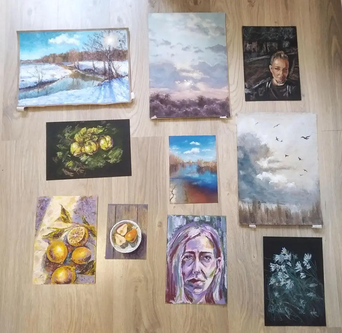 Туть то, что я отвозила, всё – самостоятельные работы, не по урокам Фиолетовый автопортрет, кстати, с натуры )