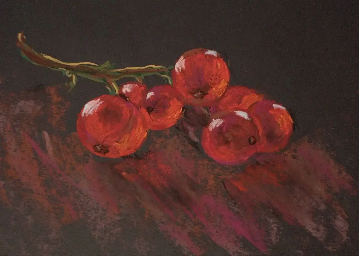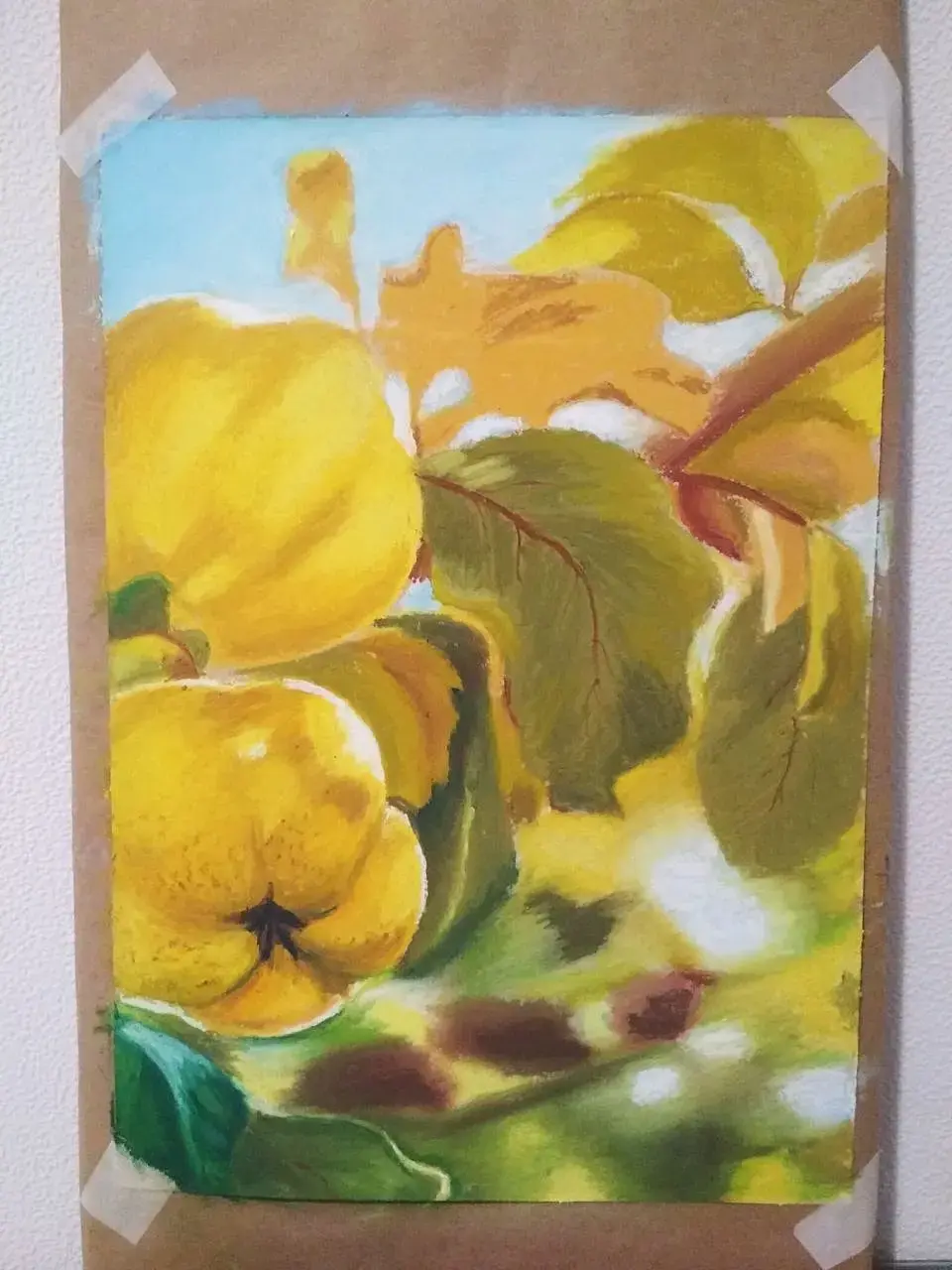 А вот это яблоко я уже попробовала нарисовать сухой пастелью по шортсу-уроку про масло )