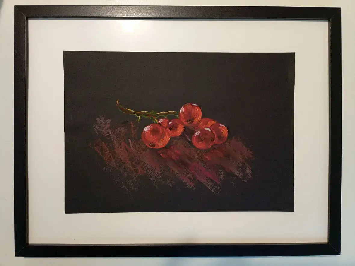 Вчера/позавчера нарисовала диптих. Мне он кажется вполне удачным, поэтому хочу попробовать продать. Если кто-то заинтересован в покупке, пишите в личку. По умолчанию предполагается оформление в такие или похожие черные рамы с белым(молочным) паспарту. Пока в наличии одна рама, поэтому не вставляла, а просто приложила сверху для фото). Нарисовано сухой пастелью на черной бумаге 80 г/м2