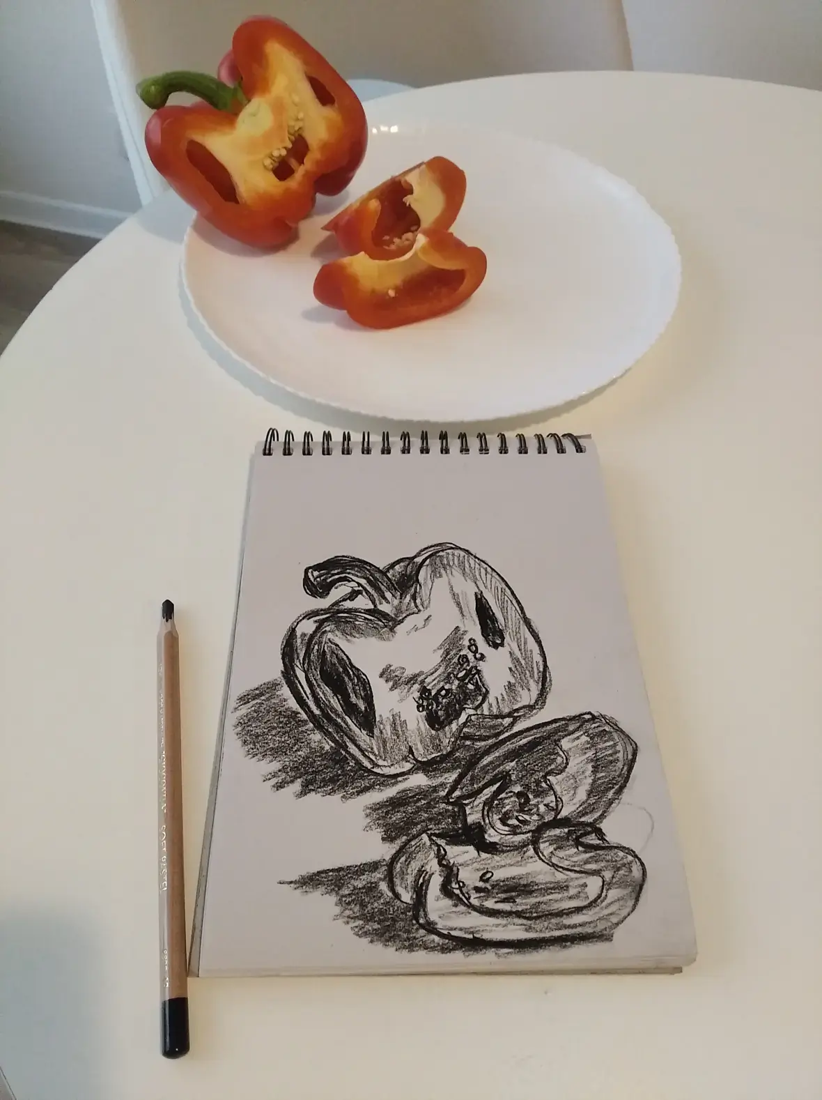 А это вторая работа с натуры(первая не такая интересная). Я была до глубины души удивлена как же легко рисовать с натуры, т.к всегда считала, что это самое сложное, не считая рисунков из головы. Пастельные карандаши, сухая пастель: