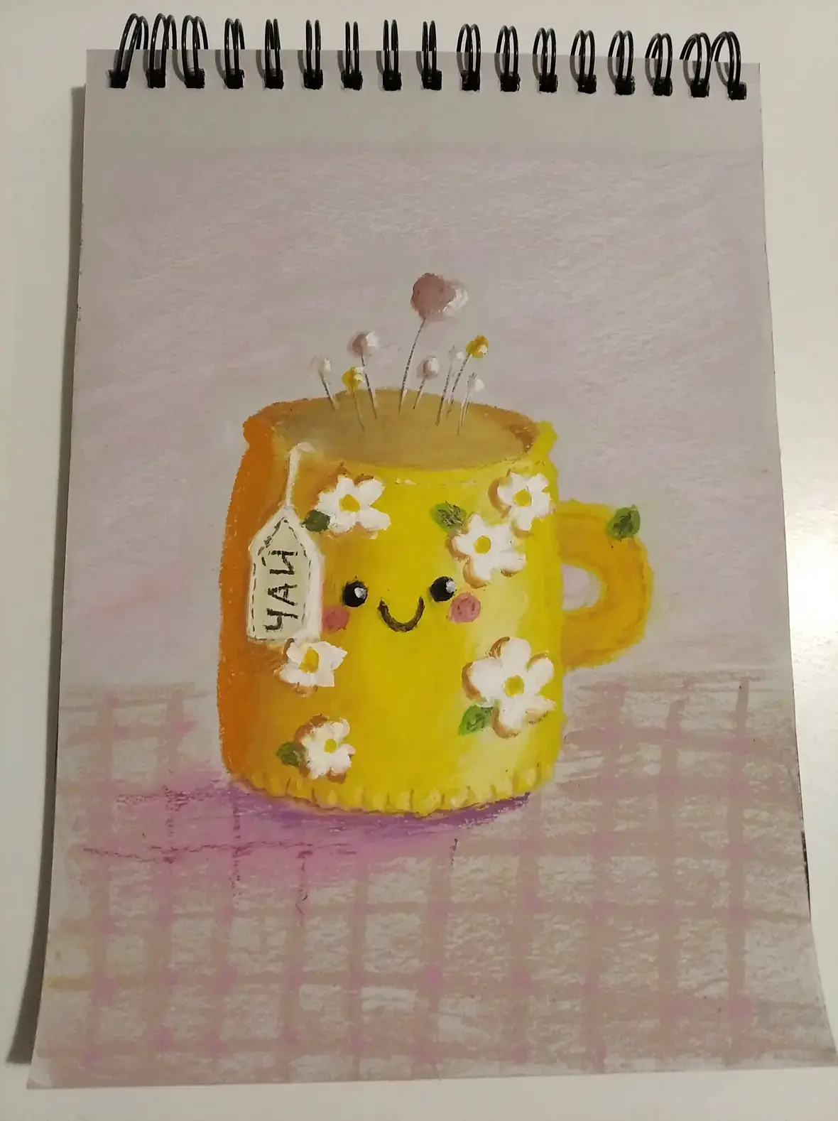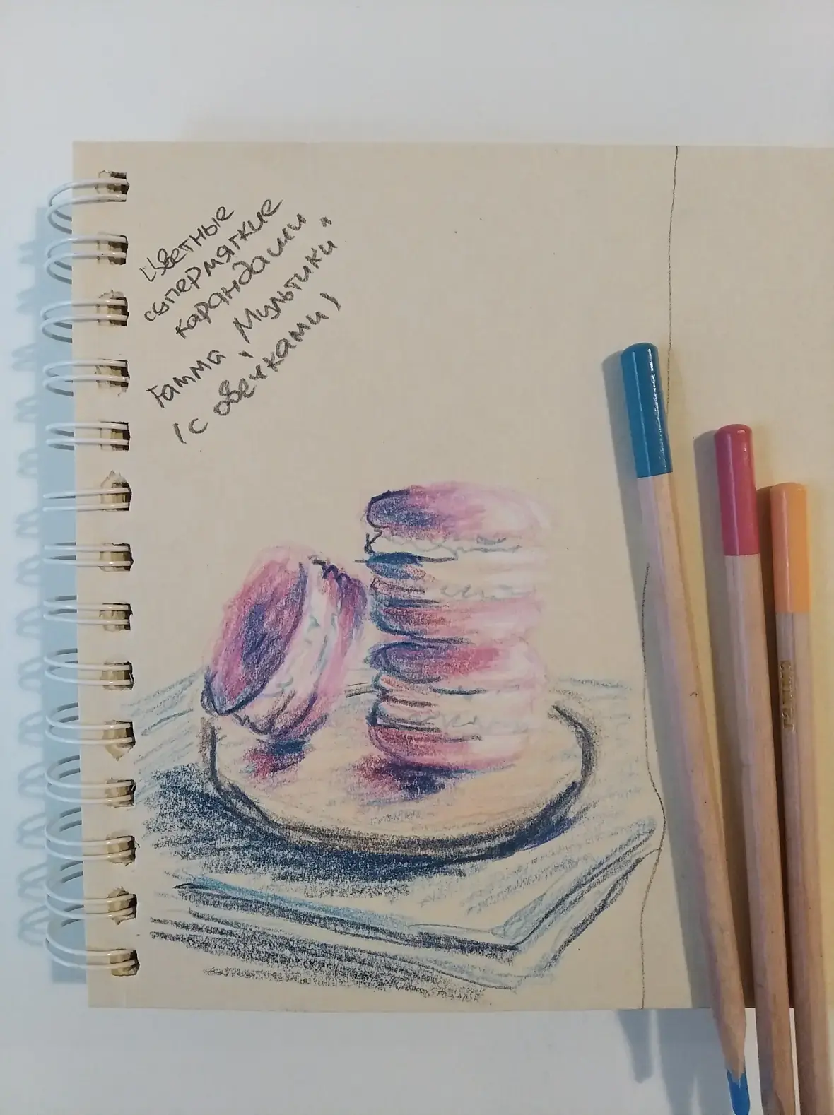 Здесь ещё тест нового скетчбука от Кройтер. Мне попался бракованный, с изогнутыми страницами, надо было вернуть, но не думала, что они будут настолько сильно и упорно загибаться. Пастельные карандаши Кохинор 24шт. Самостоятельные работы. Чайник в жизни похуже на мой взгляд. Но уже тоже нашел будущего хозяина )
