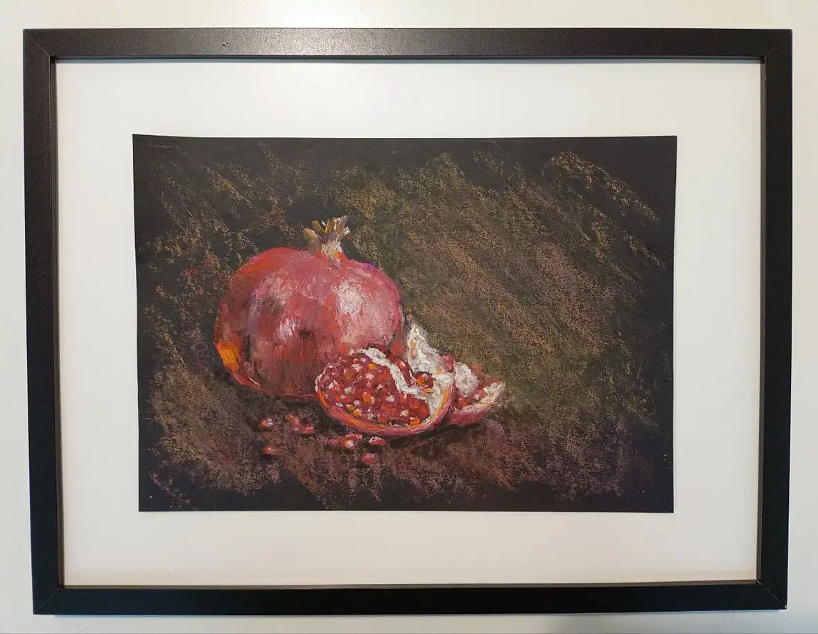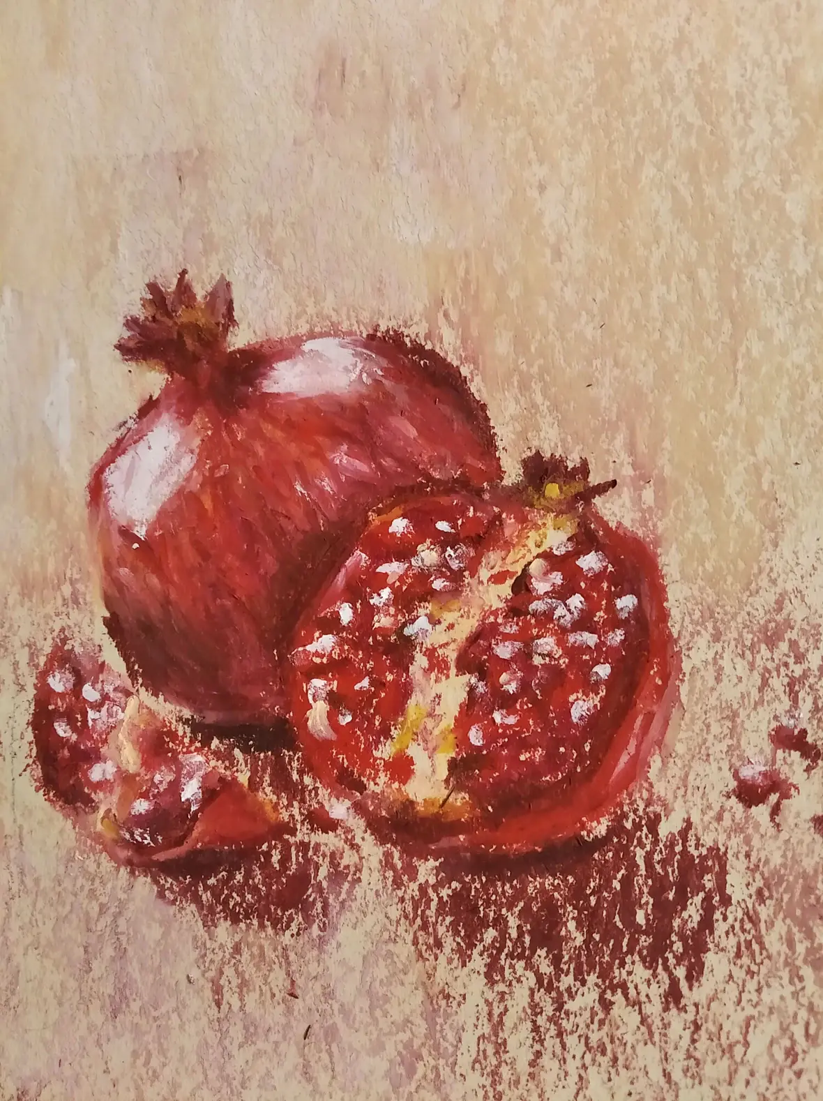 Первый гранатик нарисовала спонтанно, увидела картину с гранатами на золотом фоне и решила потестить свою золотую масляную пастель. В итоге и гранат нарисовался ) А второй недавний, тоже сама сделала зарисовку(пока, конечно, почти все с фото рисую)