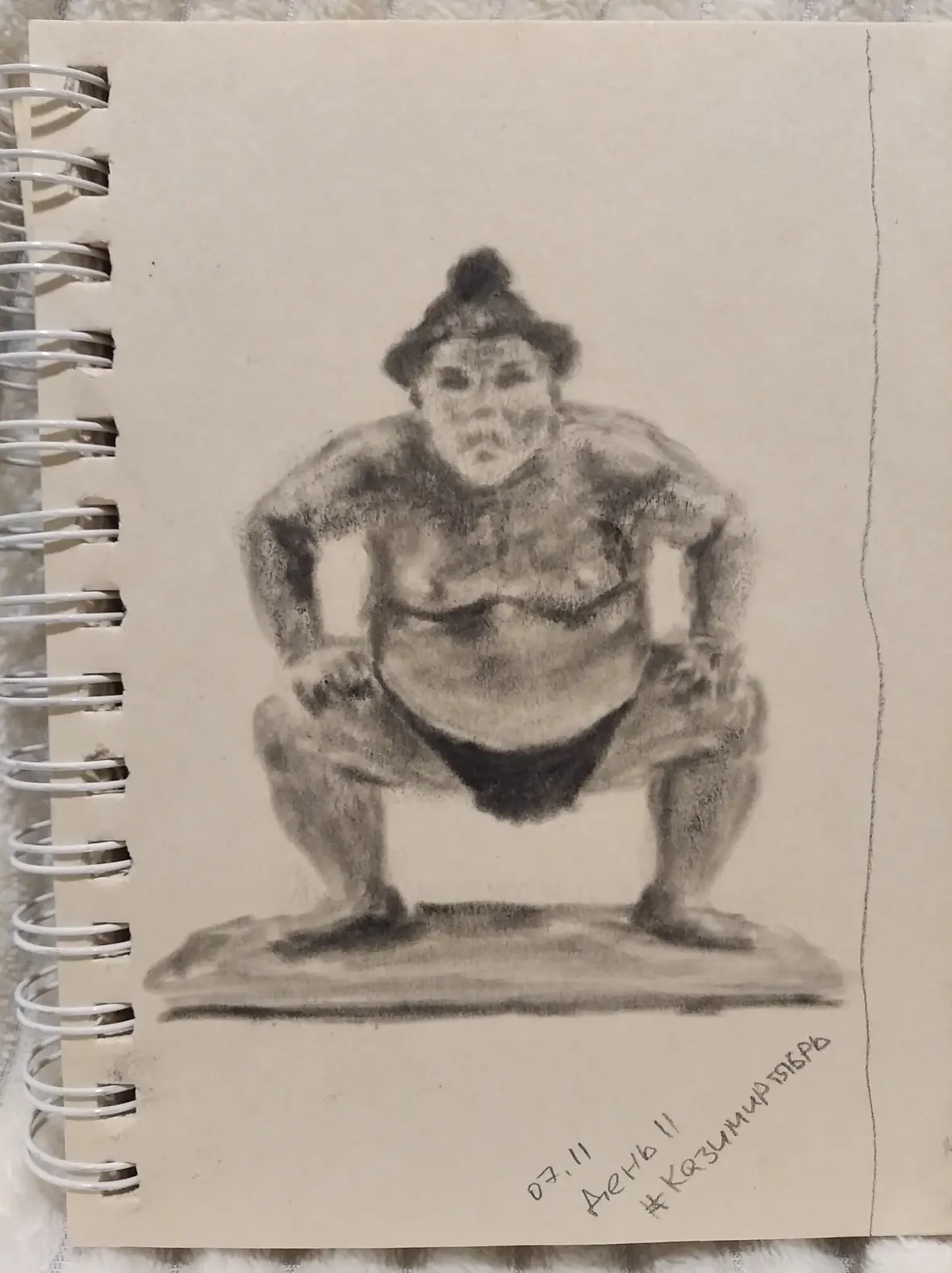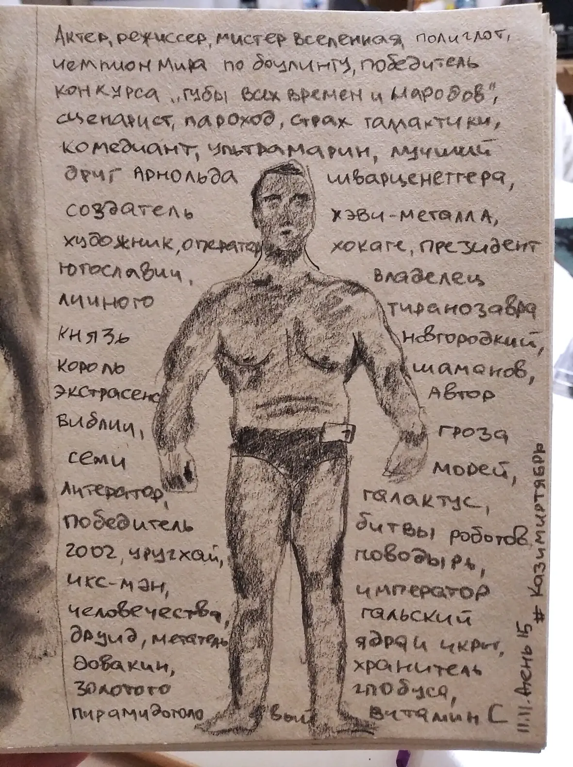 В казимиртябрьской неделе спорта я предложила порисовать такого крепыша ) Сделала в двух вариантах: пылью и карандашом, получились братья-близнецы)