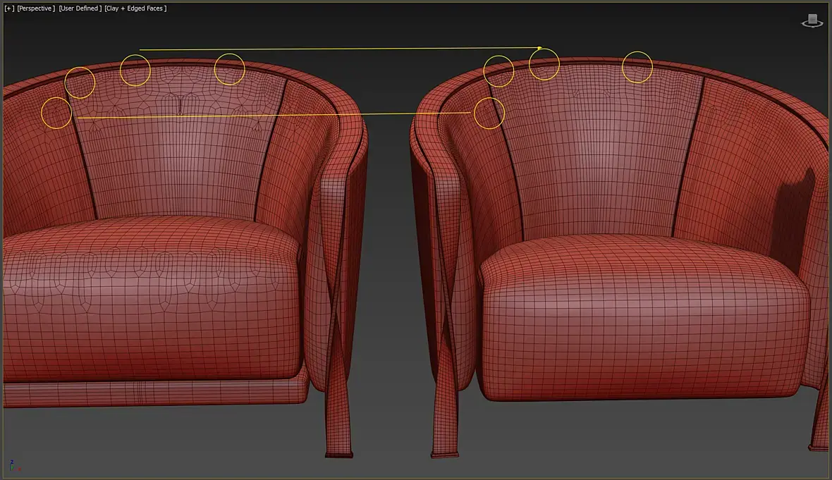 Они разные. В частности, характер сетки на седушке говорит о том, что на левой (от Дизипро) были нарезаны складки, а на правой (алексофт) - нет. Сперва может показаться, что на основе правой была сделана левая. Но нет. Фишка в том, что правая (без складок) не может быть исходником для левой (со складками), так как в этом случае увеличилась бы плотность сетки, а там она примерно одинакова. Выходит, обе седушки были сглажены из общего промежуточного источника, который для правой модели оставили в обычном виде, а для левой дополнительно нарезали. Кроме того, приковывает внимание странная разница в датах загрузках моделей. Странная она в том смысле, что это всего два дня разницы.