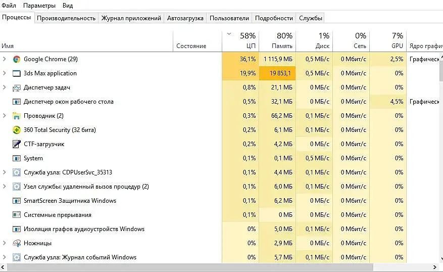 Каждый 3д макс юзает по 50-60 процентов процессора