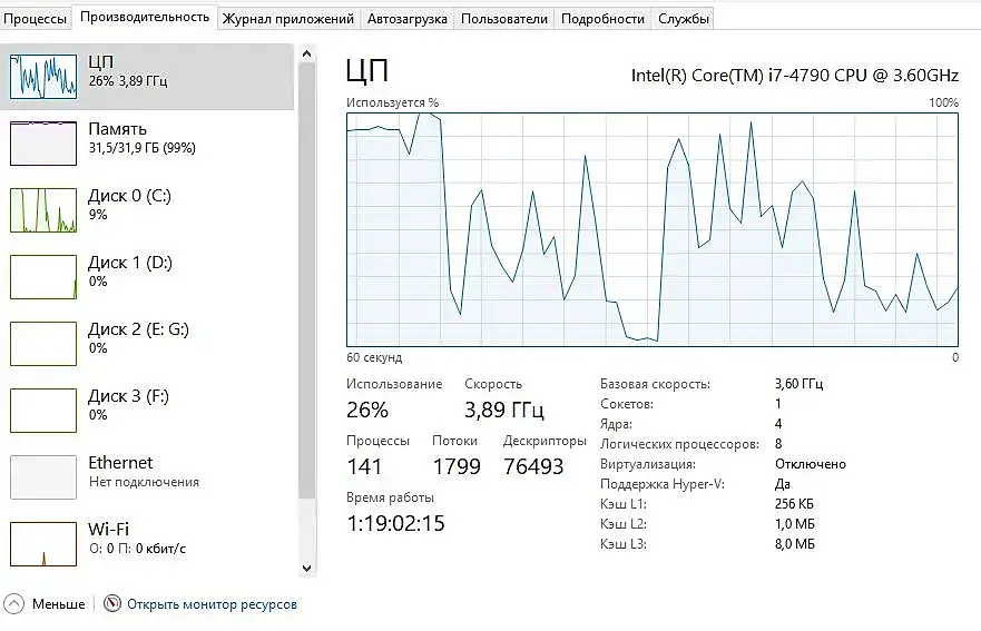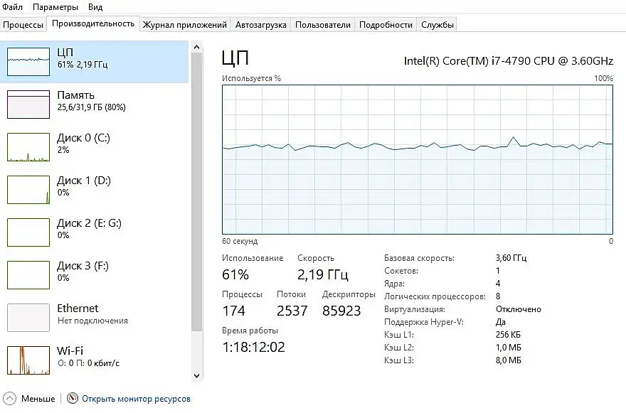 Как то смущает частота в 2.19 вместо 3.6, может тротлит и сбрасывет, как считает диспечер нагрузку я не знаю, не замерял, но если считать от родных 3.6 то у вас все норм )))