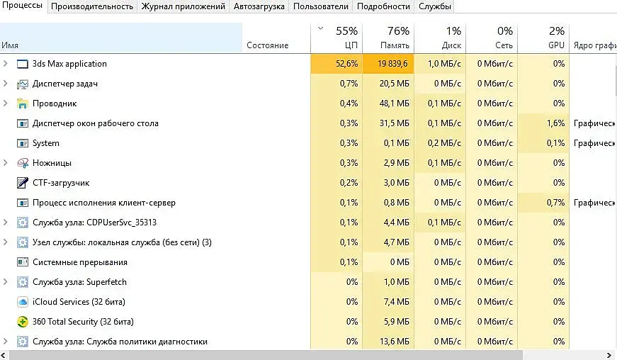 ребят помогите, обновился до вин 10, корона 1,6,3 и 1,5,2 стали загружать во время рендера то 100% то 66% думал проблема в короне, но потом потестил вирей 3.6 и та же проблема, или это норм? сцена оч простая но по сравнению с тем как рендерил на 7ке рендерить стал дольше, при этом на компе есть функция турбобуста, до 3GHz но частота поднимается только в начале рендера ненадолго до 2,8, потом все время 2,4