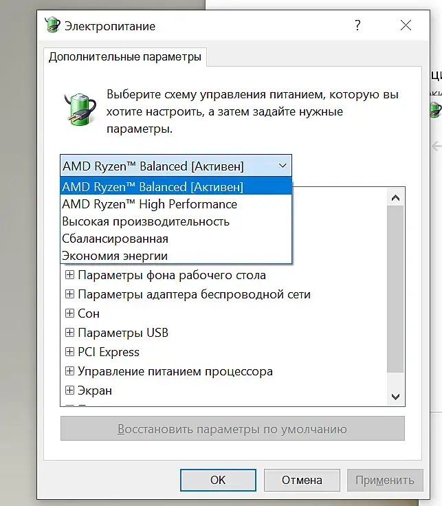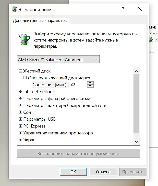 система-питание и спящий режим-дополнительные параметры питания