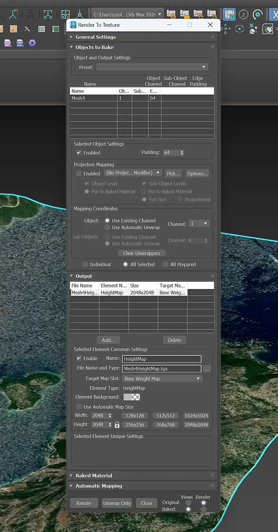 Делаю это в первый раз и уверен, что делаю неправильно) Подскажите пожалуйста, как мне запечь карту высоты с данного рельефа?