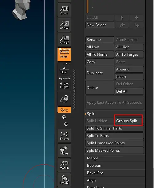 После такой операции с включенной кнопкой Groups в Dynamesh полигруппы будут отдельными элементами с закрытыми крышками (типо полигон на полигоне будет), просто держу в курсе). А Group Split, да, раскидает потом на разные сабтулы (типо объекты, как в максе)