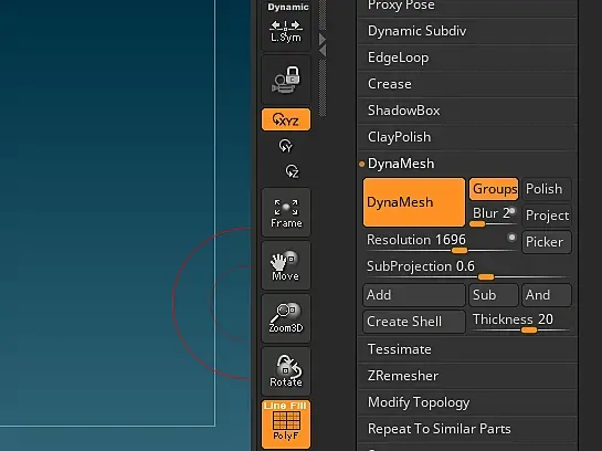 А сколько Миллионов полигонов у вас? 1500 для дайномеш достаточно большое разрешение, Хотя нужно учитывать масштаб вашего сабтула.