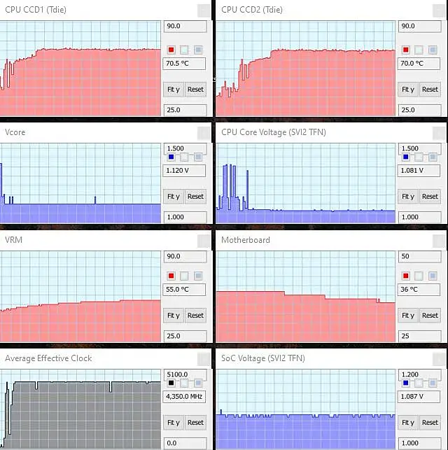 Но так же у райзенов есть так называемая Frequency Wall, так сказать тот момент когда для повышения частоты уже надо давать такое напряжение что никакая водянка не справится, только холодная вода или чиллер. Точно не помню но это где то для удачного 5950х примерно 1.4 вольта на 4.85ггц и при 95 градусах в рендере на топовой кастом воде. Но надо ли все это вам уже решать. Я бы даже с топ водой не дал бы под рендер больше 1.3 вольт.