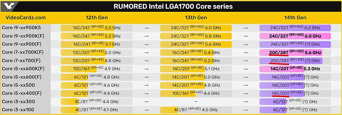 Нам то конечно всегда интересны топы. Но как по мне главная фишка рефрешей это что для нищуков и игрунов отсыпали дополнительно ядер. Конечно еще неизвестно че там по ценам будет. Но вдруг Интел решили порадовать людей докинув ядер в младшие модели за примерно тот же прайс. 14400F на 20 потоков за 240$ в игровой компуктер, ммм... Звучит неплохо как по мне. За эти деньги разве что Ryzen 7600 без X...