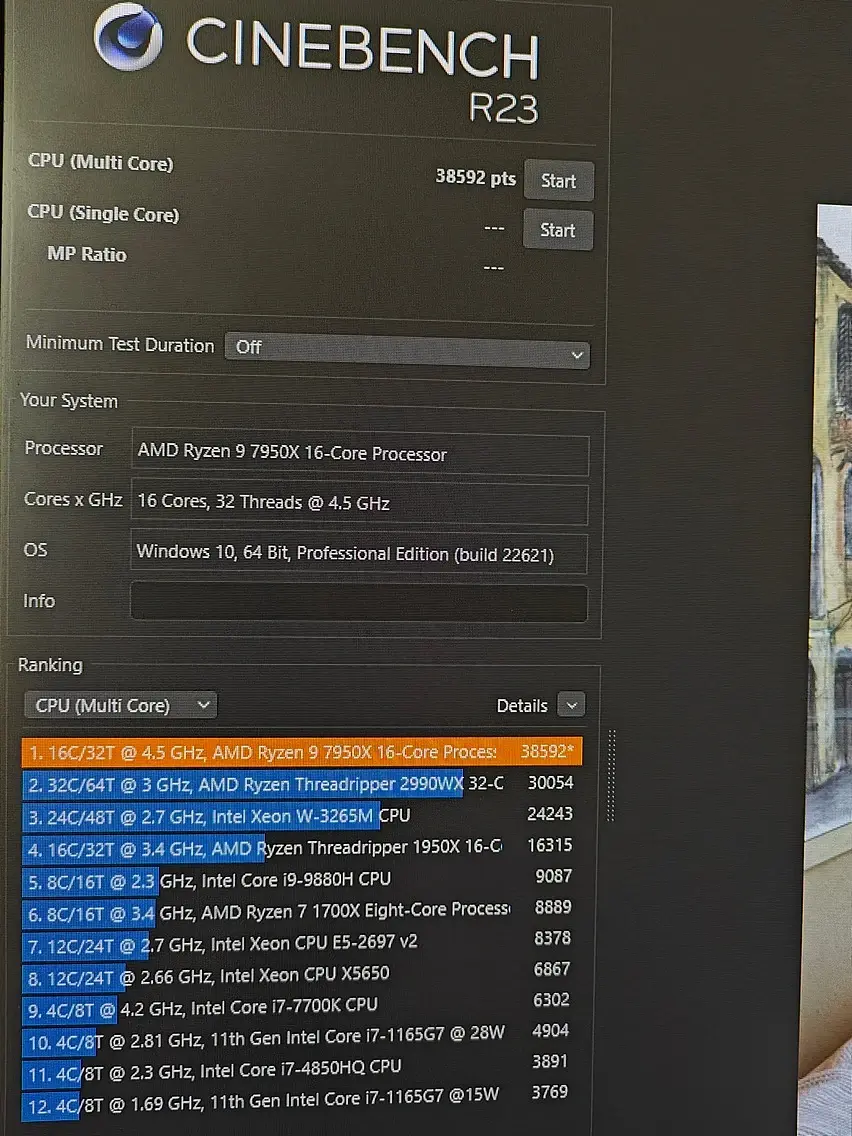 Это компы которые лично я настраивал и сравнивал. Память минимально влияет на софтверный рендринг, после определенного порога. Но если что, на Интеле была DDR4 3866/CL16, на АМД DDR5 5200/CL30. Все настроенное руками.