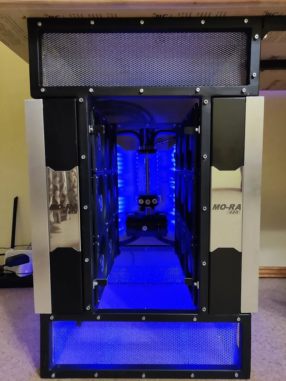 Чет он как то помелочился. Надо было еще одну МORA поставить в общий контур и засыпать туда лёд во время теста И сделать как на этой фотке 36 пропеллеров только для Push-Pull системы Система охлаждения небось потребляет столько же мощности как и компьютер