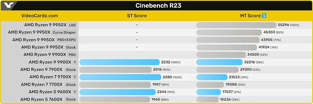 Вообще у 13900К в Cinebench R23 разницы кот наплакал между P-5.5 + E-4.3 -> 40600 и P-5.2 + E-4.2 - > 40000, т.е ~2.2% всего. При этом для стабильной работы CBR23 в первом случае нужно 235вт, а во втором 200вт, 17% разницы в потреблении. А на P-4.6 + E-3.2 -> 32000 при 90вт