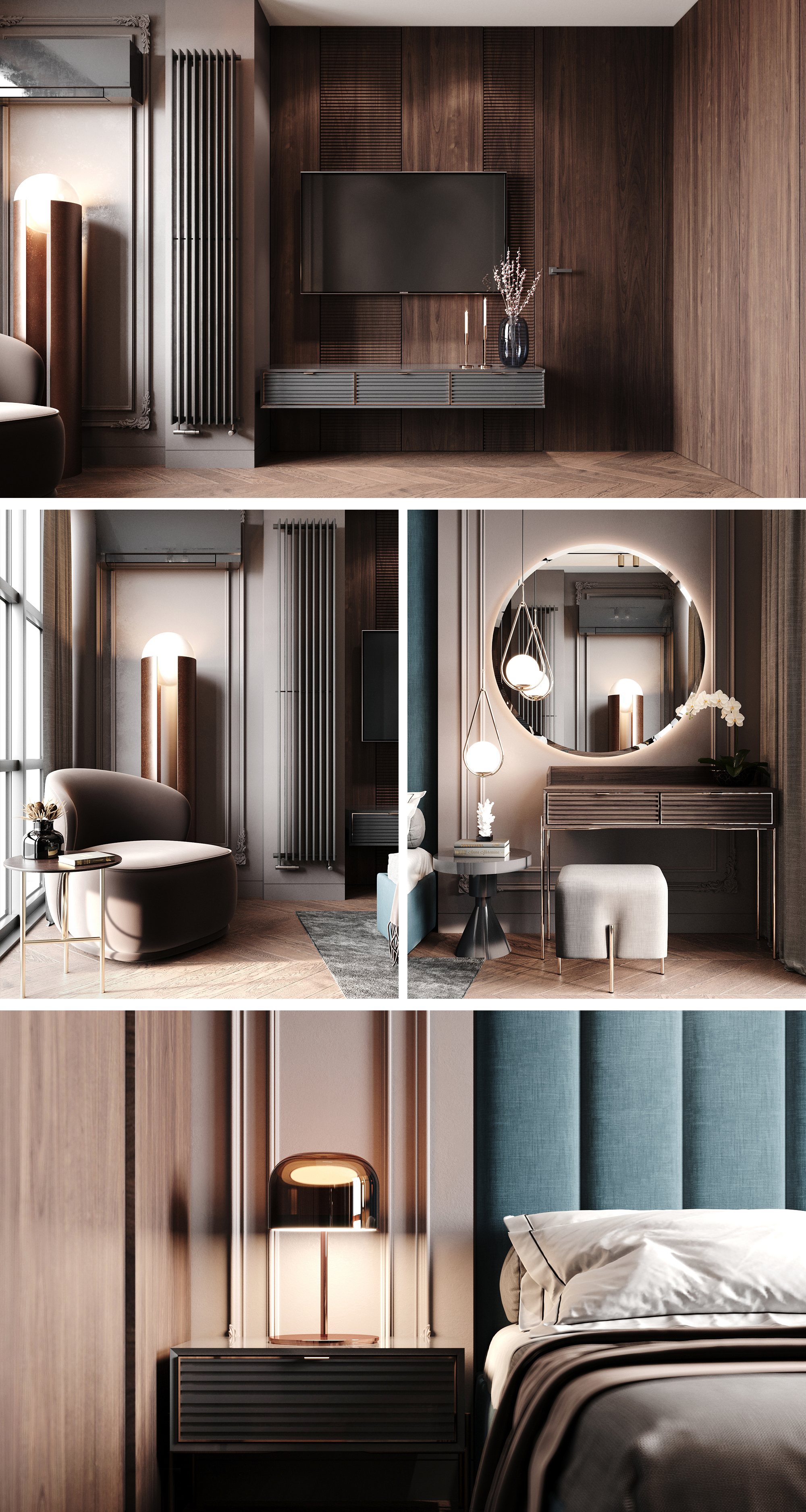 Дизайн и визуализация спальни. Разработано совместно со студией Prosvirin design.