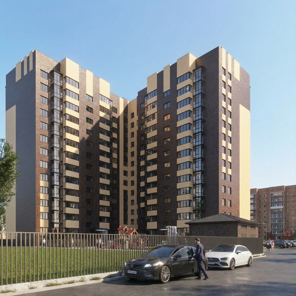 3D визуализация, доработка фасадов и проект благоустройства 13-ти этажного жилого дома в г. Абакан для ООО СЗ "АльфастройИнвест", 2025 г.