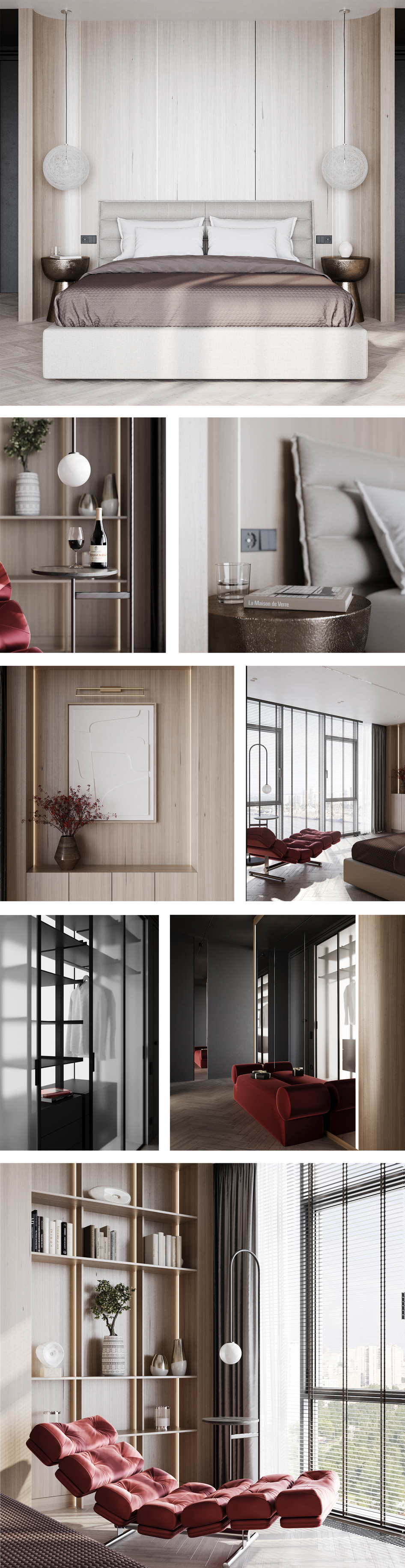 Спальня из проекта 23th Floor. Дизайн и визуализация мои. В более высоком разрешении можно посмотреть на Behance