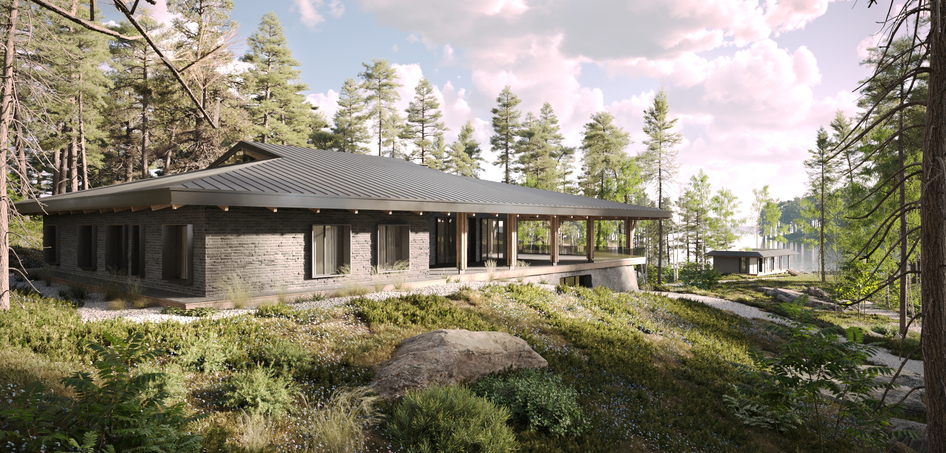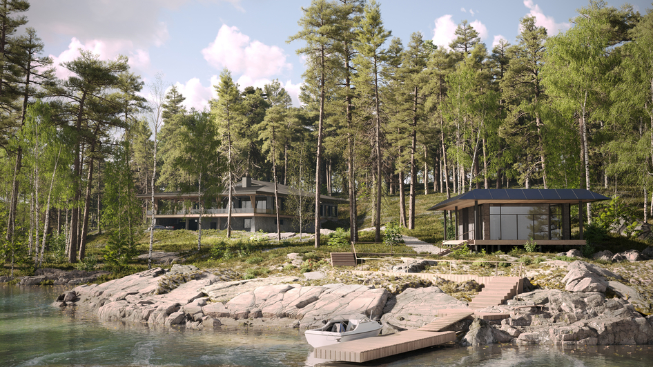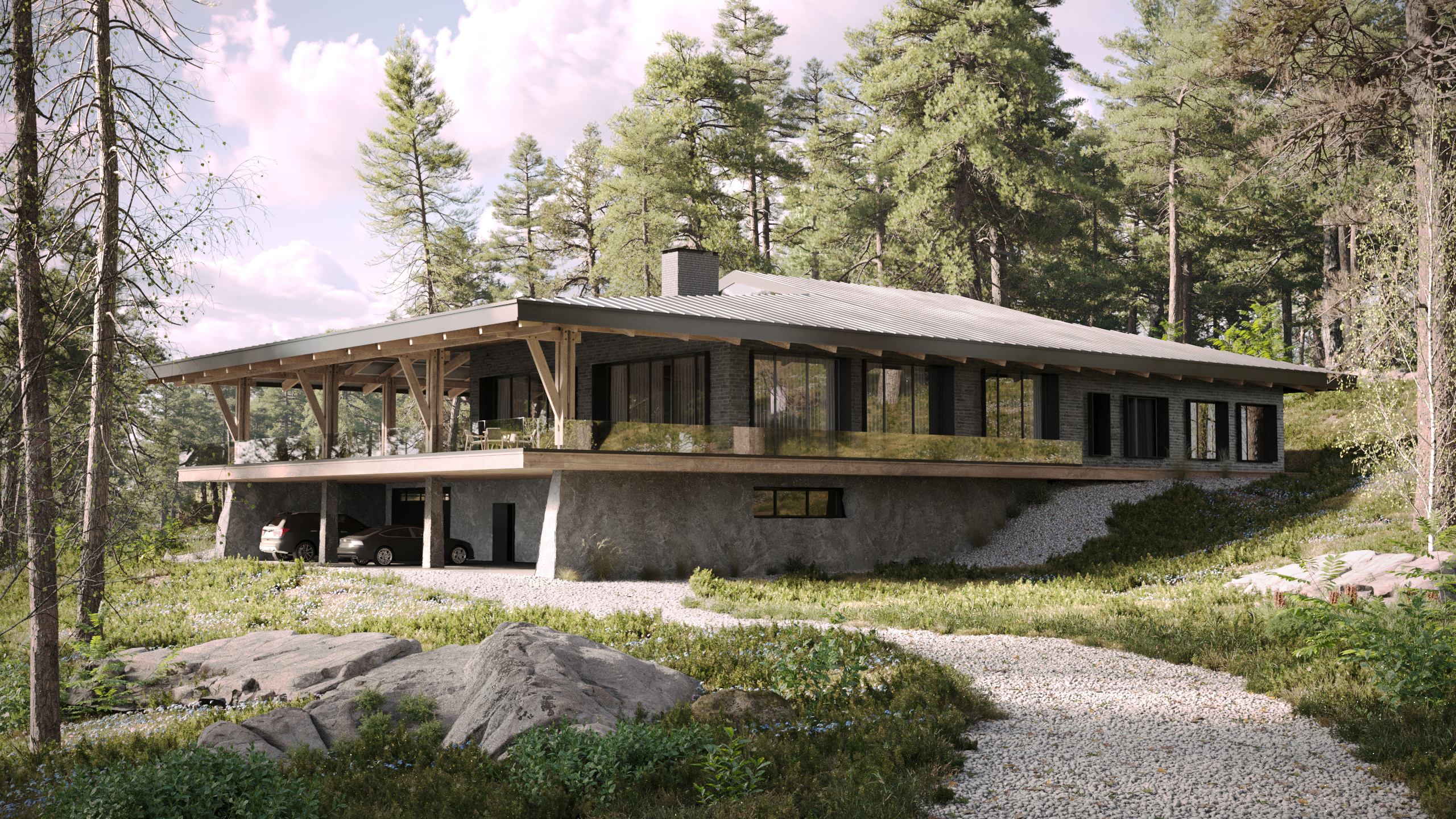 Органично вписанный в природный ландшафт, этот жилой дом представляет собой гармоничное сочетание современной архитектуры и дикой красоты леса и скалистого берега реки. В проекте используются натуральные материалы, такие как дерево и камень, чтобы здание естественно сливалось с окружающей средой. Большие панорамные окна открывают захватывающие виды на лес и реку, создавая ощущение единства с природой. Ландшафтный дизайн разработан с учетом сохранения существующих деревьев и естественного рельефа, минимизируя воздействие на окружающую среду. Дом будто вырастает из земли, повторяя линии скал и изгибы реки. Цветовая палитра фасада вдохновлена оттенками коры деревьев и камней, что делает здание практически незаметным в лесном массиве. Этот проект – пример бережного отношения к природе и стремления создать жилое пространство, которое является частью окружающего пейзажа, а не чужеродным элементом. Архитектура здесь служит продолжением природы, а не наоборот. Использование экологически чистых материалов и энергоэффективных технологий дополнительно подчеркивает стремление к гармонии с окружающей средой, делая этот дом идеальным местом для уединенной жизни в окружении природы.