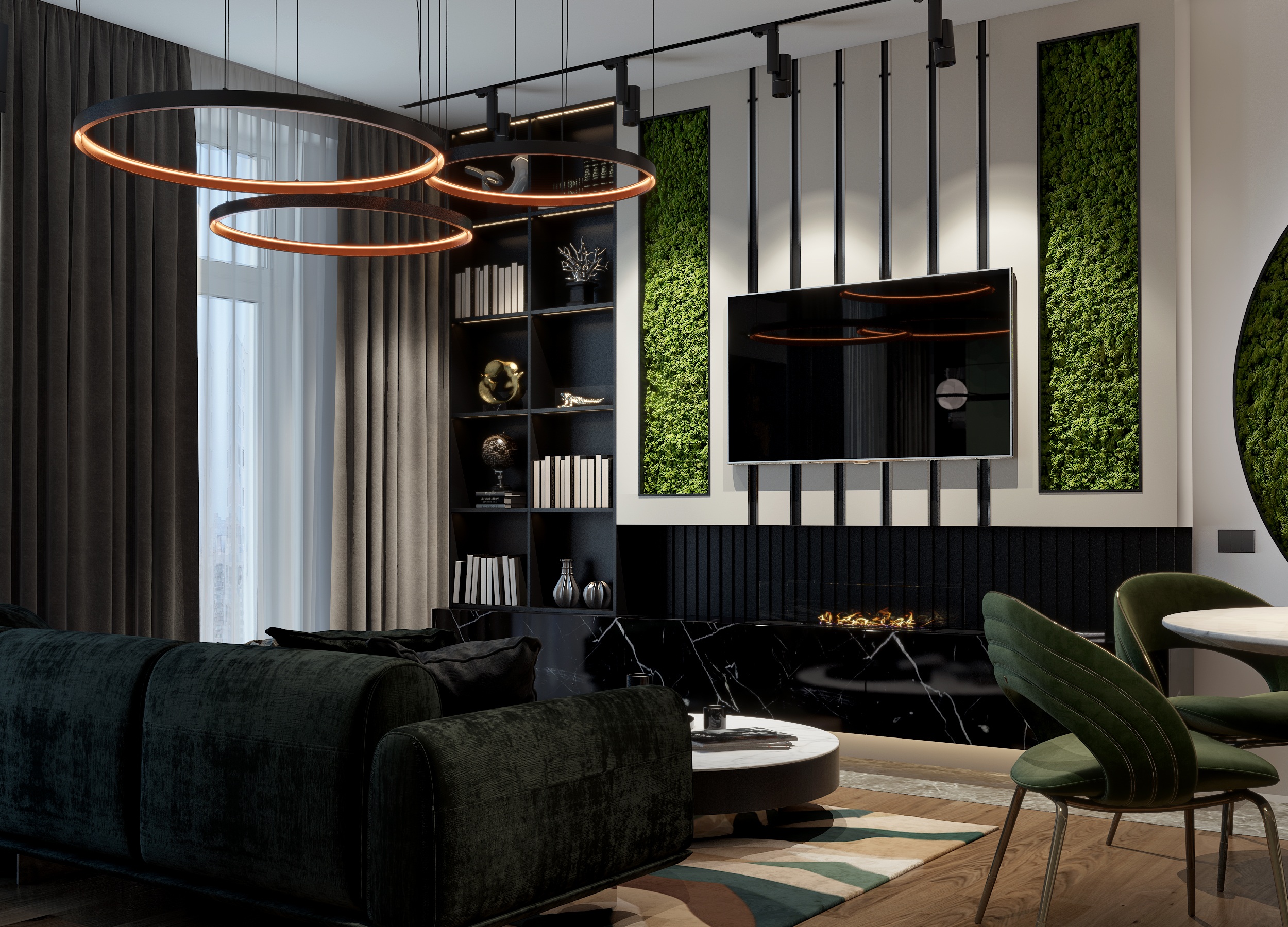 Переборщили обработкой в тенях, тучтка сбавить надобы затемнение в тенях, диван так вообще не зеленный а черный.