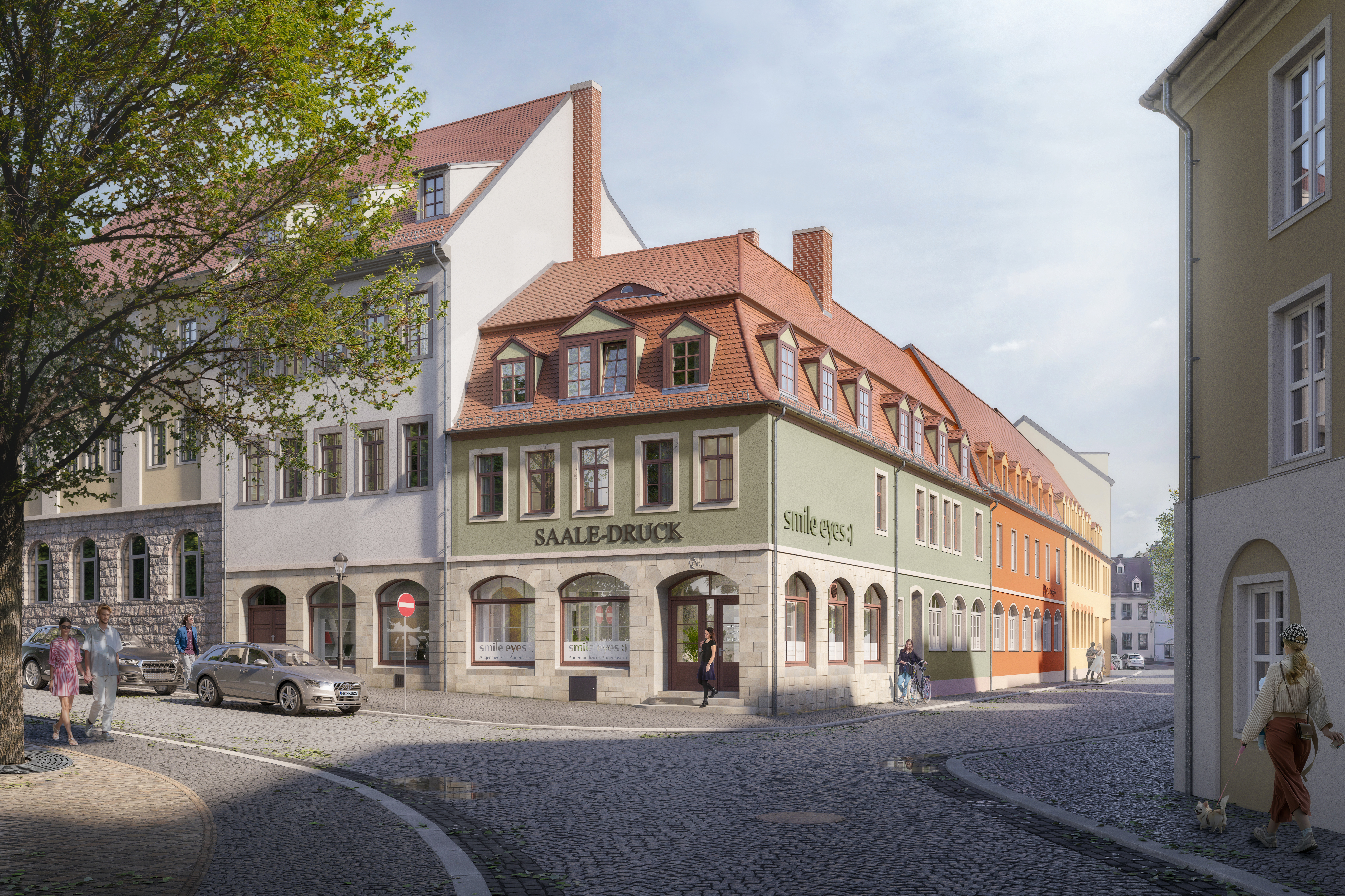 Проект "Alte Druckerei Naumburg" представляет собой реновацию исторической типографии в Наумбурге. Визуализации демонстрируют сочетание классической архитектуры с современными элементами, создавая гармонию между старым и новым. Мы акцентировали внимание на сохранении исторического облика зданий, добавляя современные детали и комфортные жилые и общественные пространства.
