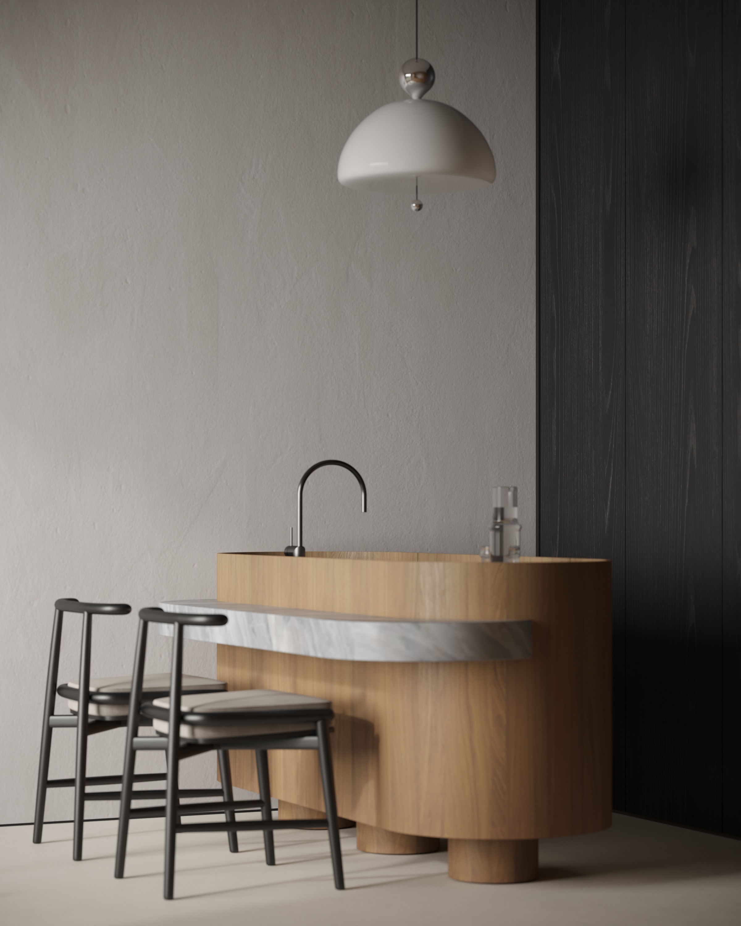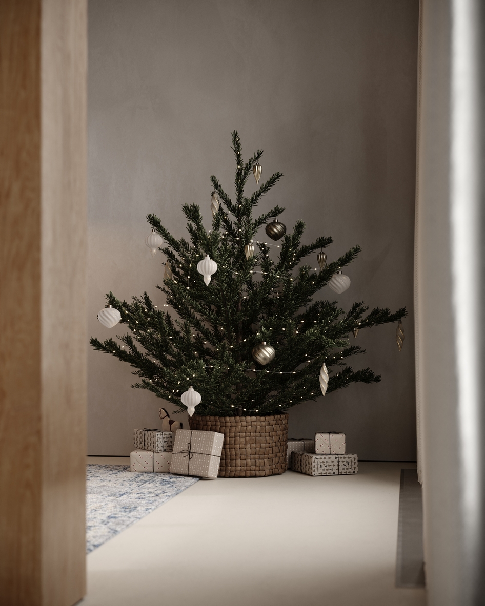 Проект выполнен по референсу дизайнера Olha Moskalets. Взяв за основу проект дизайнера в рамках учебного курса отрабатывала навыки постановки света, ракурсов, пробовала моделить простые формы. Немного добавила новогоднего настроения.