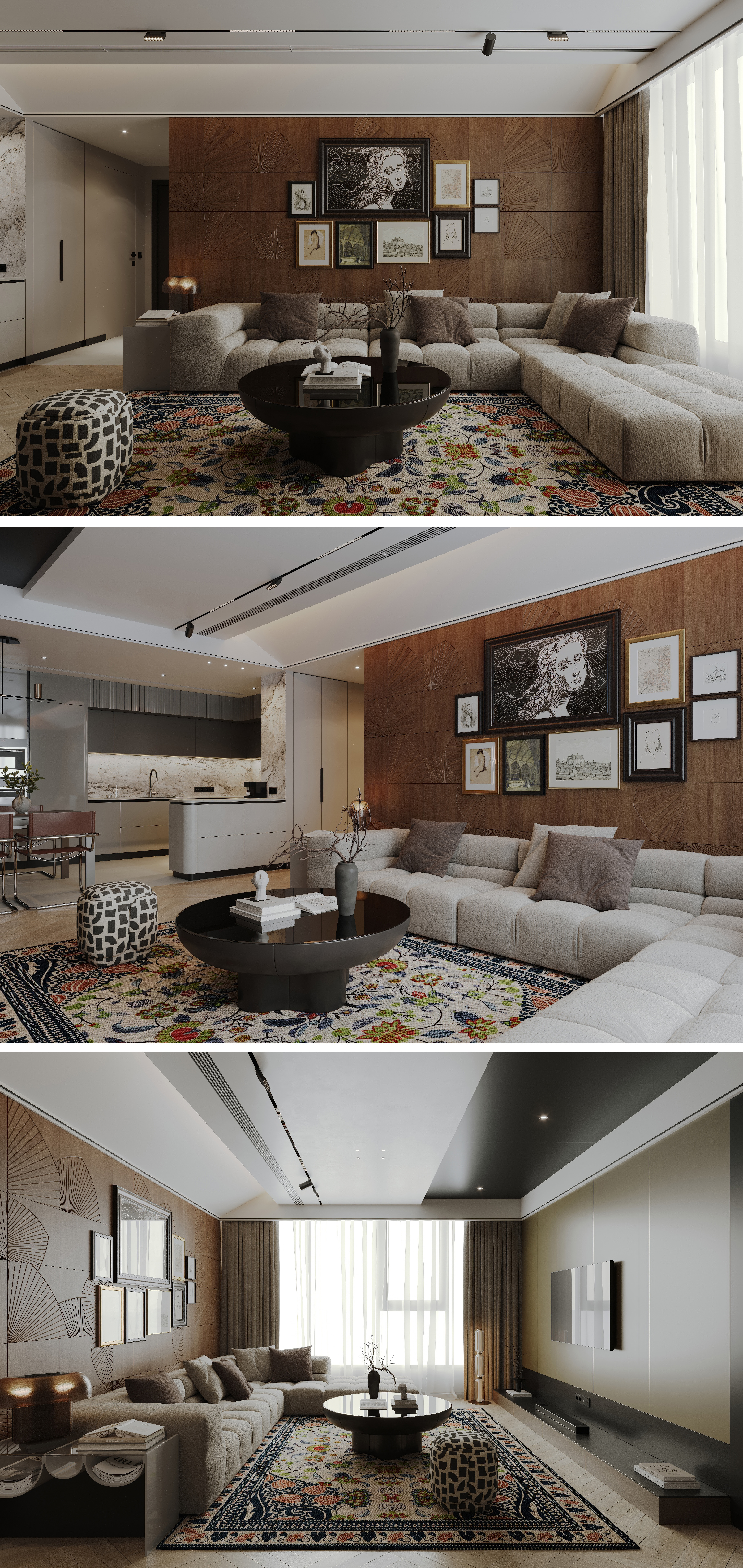 Дизайн+визуализация кухни- гостиной. 3ds max 2024 Corona 13 Всех с наступающим!