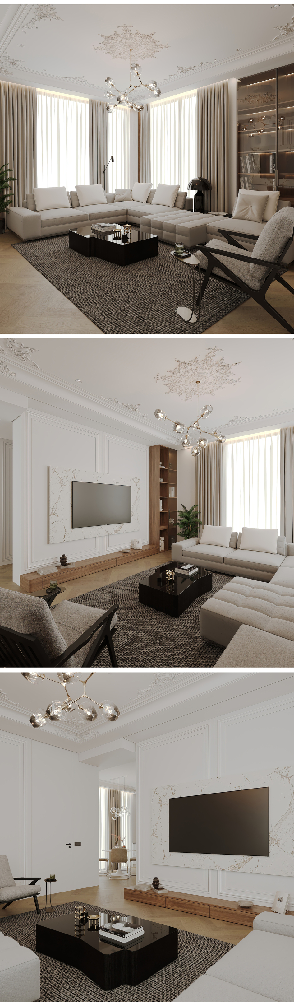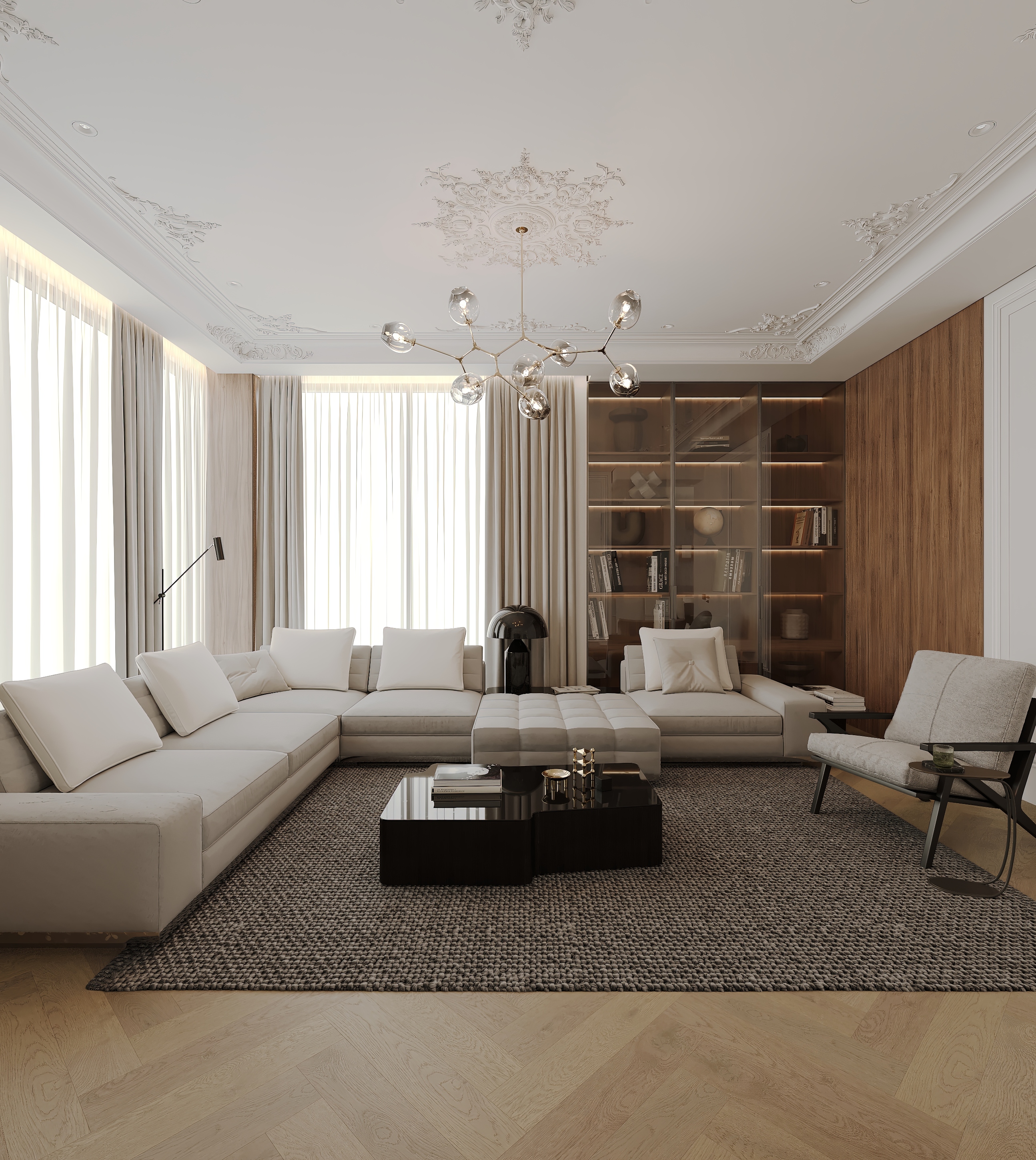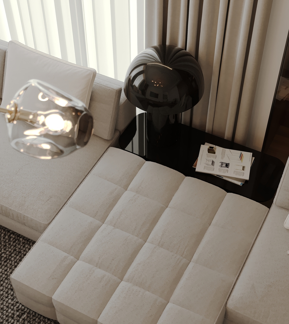 Красивый интерьер, но диван на последних ракурсах, как буд-то был импортирован из SketchUP-a.